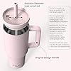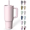 TILUCK 40 oz Tumbler with Handle, Vacuum Insulated Stainless Steel Travel Mug with 100% Leak-Proof Silicone Straw Lid, Cupholder Friendly Water Bottle(LightPink, 40oz)