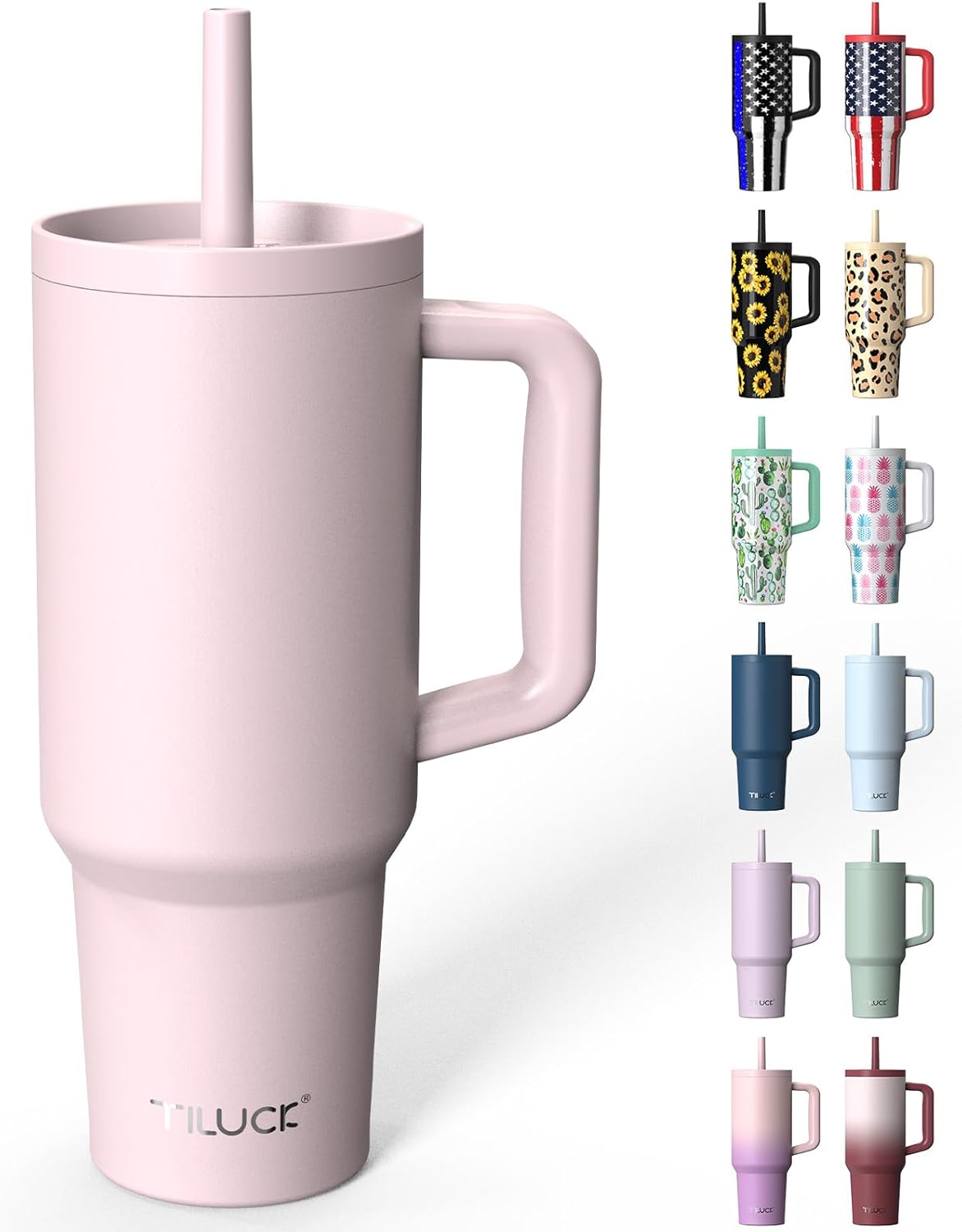 【Easy to Clean】The TILUCK 40 oz tumbler with Handle is dishwasher safe. Both the top silicone straw and the inner clear straw are removable, allowing for thorough, worry-free cleaning and better hygiene