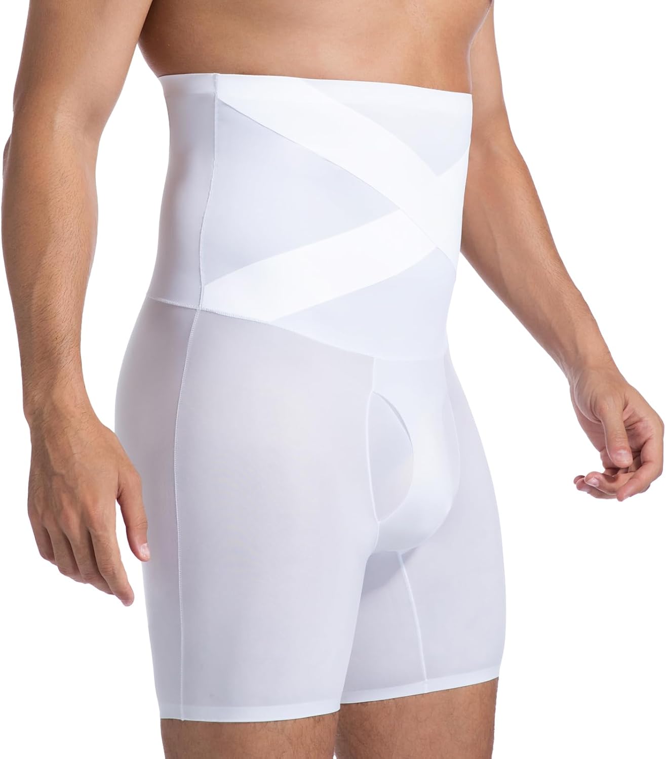 Mens Shapewear Tummy Control Boxer Briefs Compression Shorts Slimming Body Shaper, High-Waisted, Long-Legs