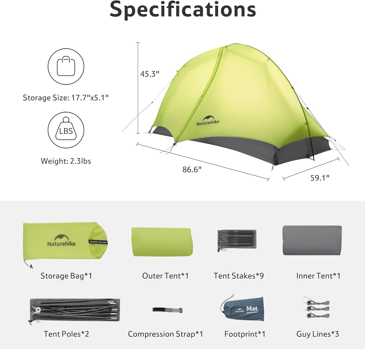 Naturehike Star Trail 2.3lb One Person Tent, Easy Setup, Compact, Spacious, Ultralight 1 Person Backpacking Tent for Camping, Outdoor, Hiking and Mountaineering