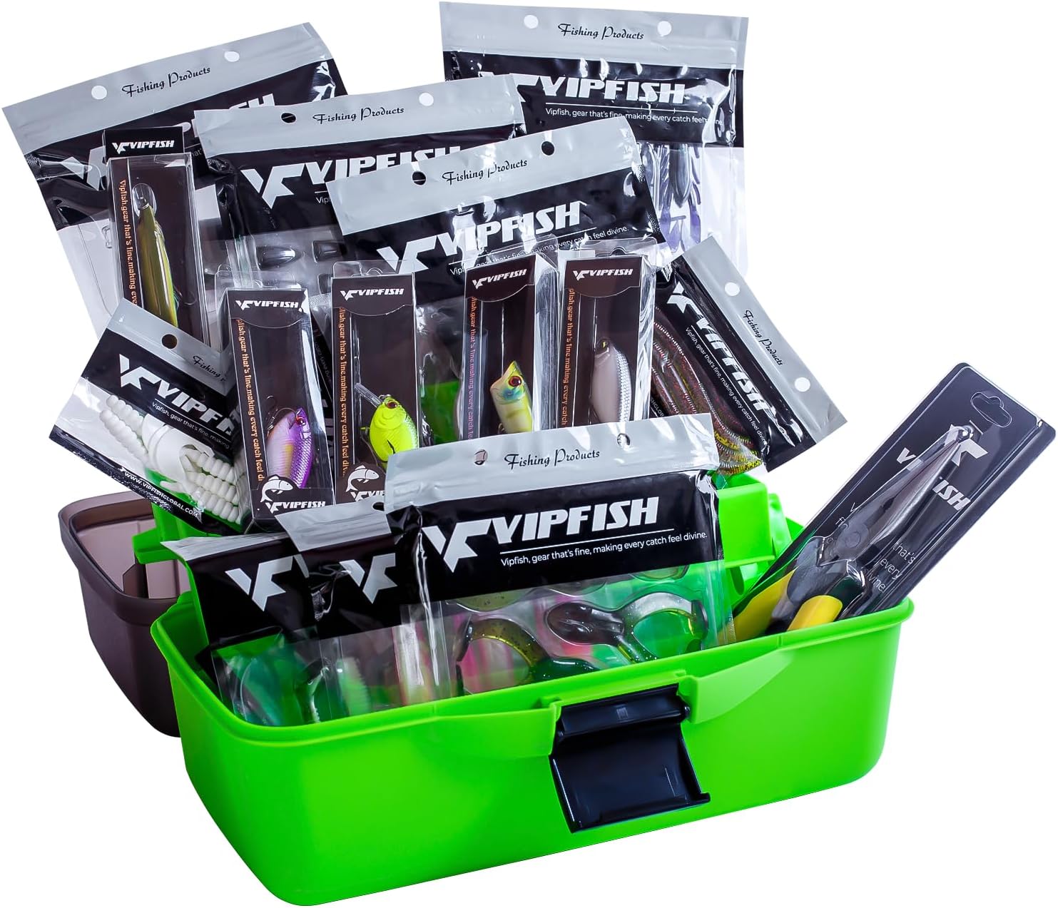 Fishing Tackle Box with Tackle Included Lures, Hooks, Weights, 3-Layer Freshwater Fishing Tackle Kit for Bass Trout Walleye Fishing Gear and Equipment, Gift for Fishingman