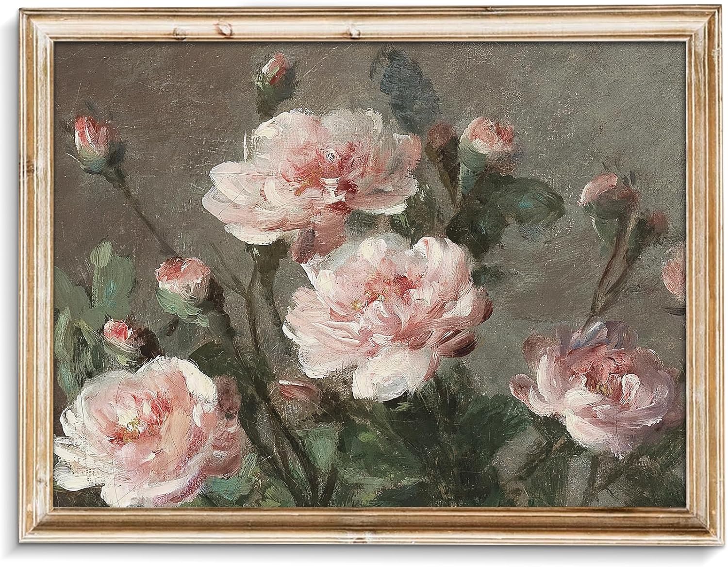 uniro Vintage Flower Soft Pink Rose Painting Cottage Wall Art Decor Coquette Pink Country Botanical Painting Retro Pinks Rose Wall Art Artwork for Bedroom Bathroom Living Room decor