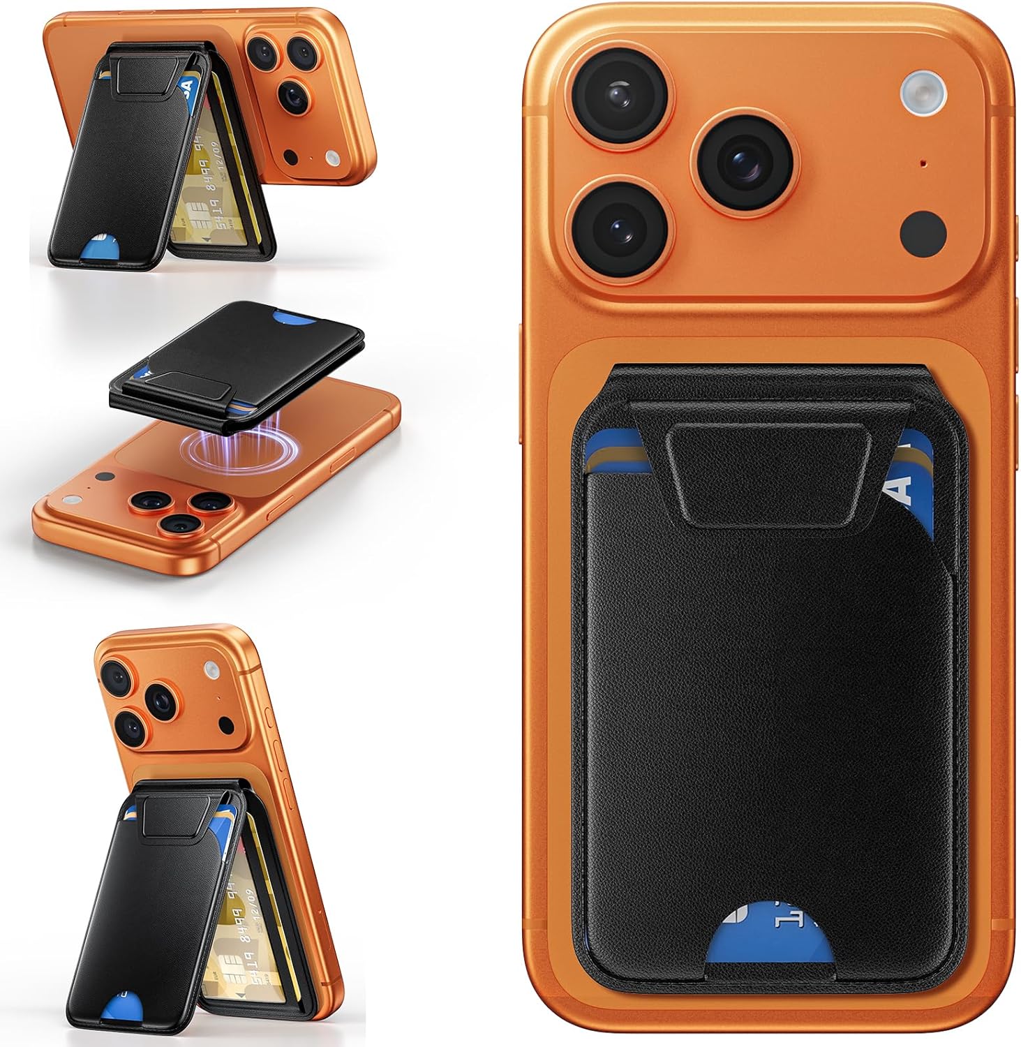 【Applicable Models】This Mag-Safe wallet stand has a built-in adjustable hinge, which supports three support modes: horizontal screen, vertical screen and hanging, Magnetic wallet is compatible with iPhone 17/17 Air/17 Pro/17 Pro Max iPhone 16/16 Plus/16 Pro/16 Pro Max iPhone 15/15 Plus/15 Pro/15 Pro Max/14/14 Plus/14 Pro/14 Pro Max/13/13 Pro/13 Pro Max/12/12 Pro/12 Pro Max. Not for iPhone 13/12 Mini. ❌ Note: Ordinary cases don't support Mag-Safe .