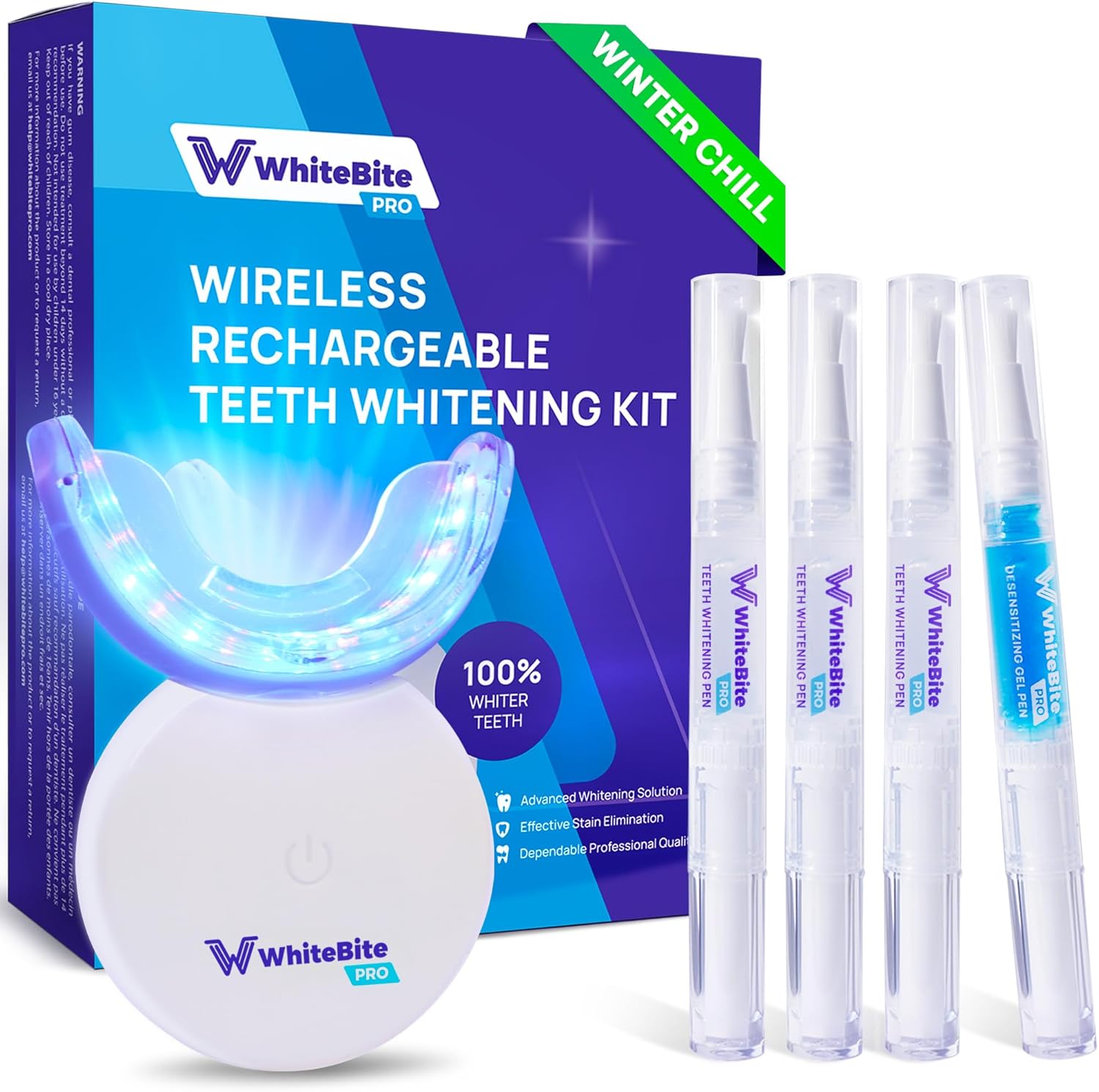 WhiteBite Pro Premium Teeth Whitening Kit for Sensitive Teeth | 32X Dual LED Light, 3 Whitening Pens + 1 Remineralizing Pen | Stain Remover | Safe for Enamel