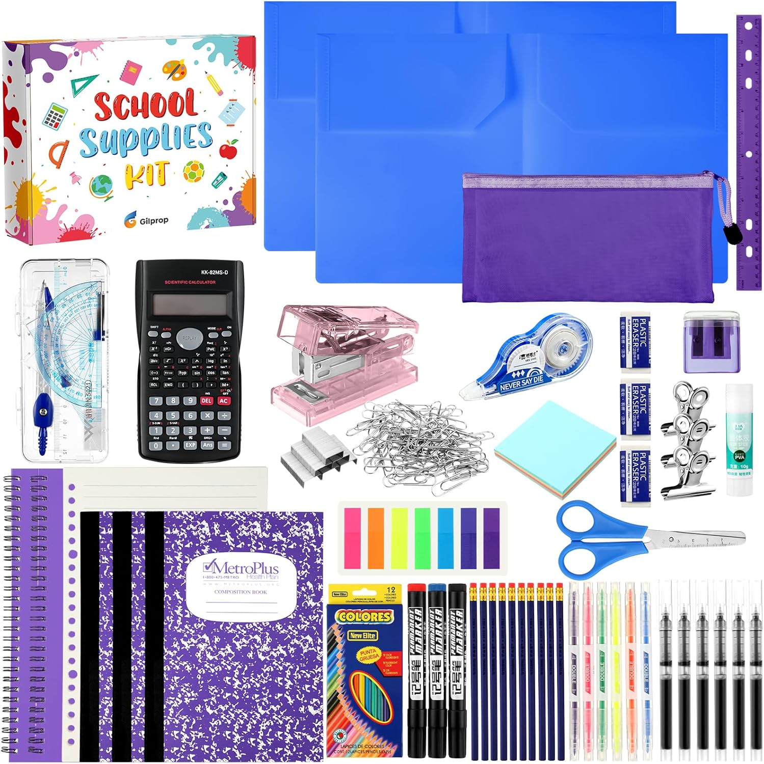 School Essentials Bundle: our extensive set of high school supplies includes everything you need to meet the academic needs of older students through the first day of middle school and beyond, helping them stay organized and prepared throughout the school year; Whether it's homework, studying, or class, this back to school bundle of tools has you covered