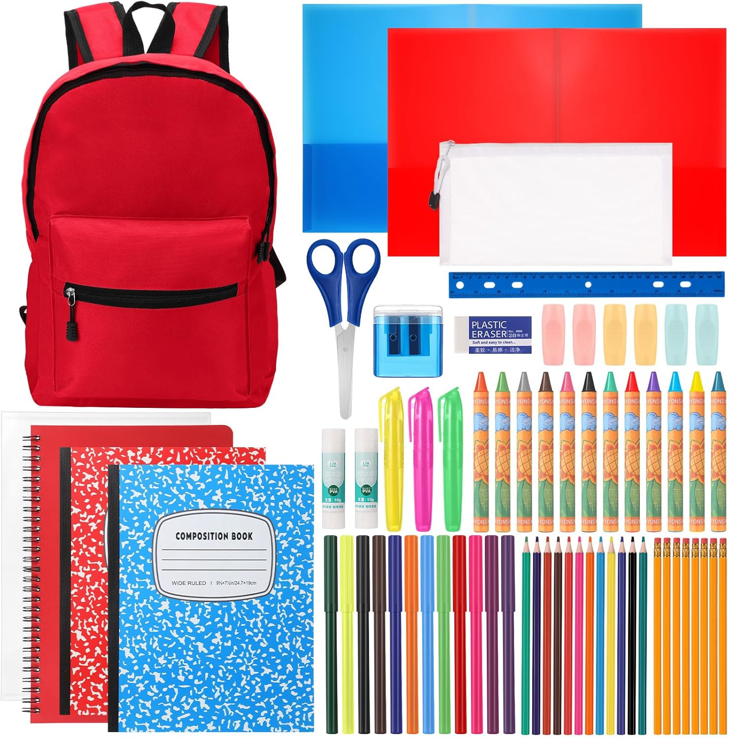 Reliable Quality: the backpack in the school supplies set is red, which is both fashionable and practical; All the included items, such as pencils, notebooks, crayons, rulers, etc., are made of quality materials, and their safety and quality ensure long term use, making it an ideal choice for students