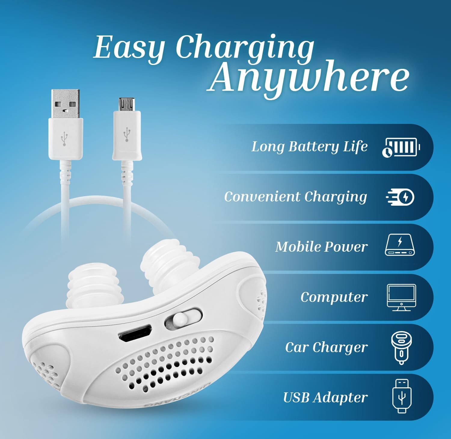 【Lightweight & Rechargeable】 This stop-snoring device comes equipped with a USB charging port. Charge before first use. Its lightweight, compact design makes it effortless to carry anywhere.