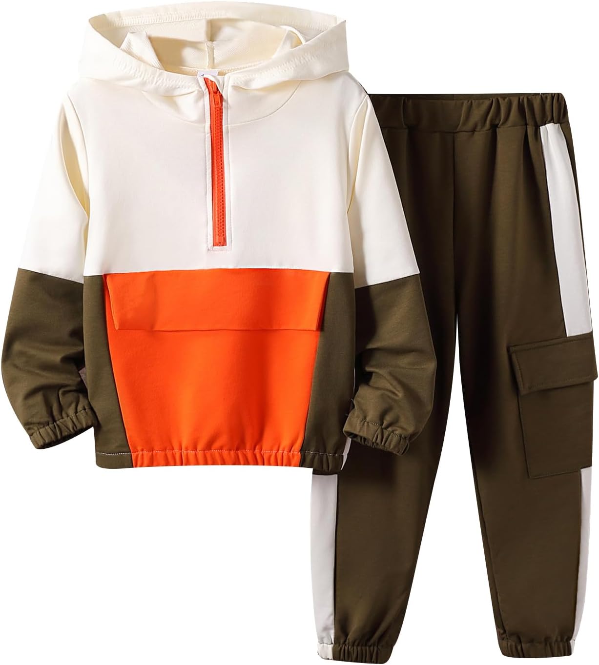 Boys Clothes Kids Little Boy Color Block Half Zip Hoodie & Jogger Pants Outfit Set,4-12 Years
