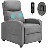 SMUG Recliner Chair for Living Room, Leather Recliners, Home Theater Seating with Lumbar Support with Adjustable Backrest and Footrest, Modern Living Room Furniture with Padded Seat, Grey Seating