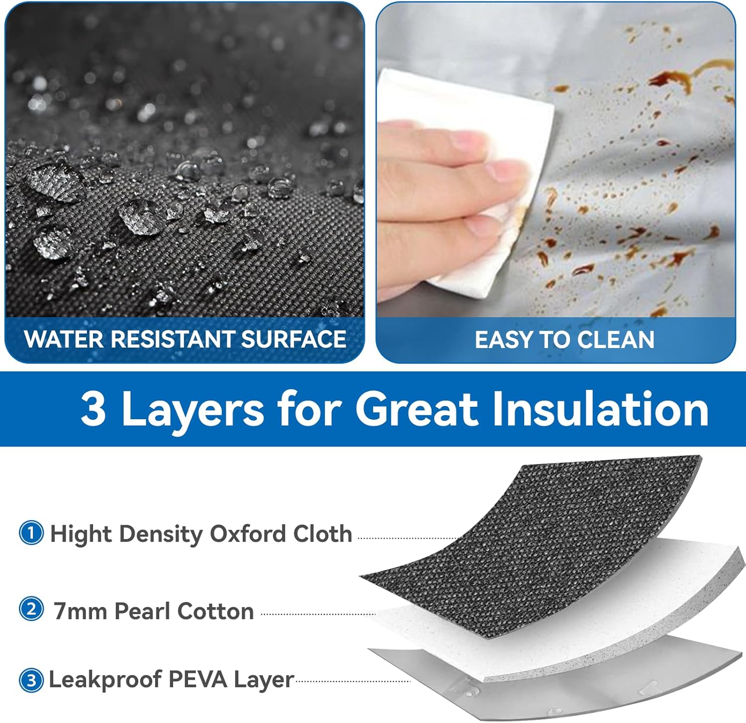 【Leak-Proof & Insulation】 The outer fabric is made from durable water-resistant material, waterproof and easy to clean. The inner liner is made of thermal insulation material, which can keep the food warm or cold. The top section is great for dry foods, storage space to accommodate your meals, drinks, and fruits for the day.