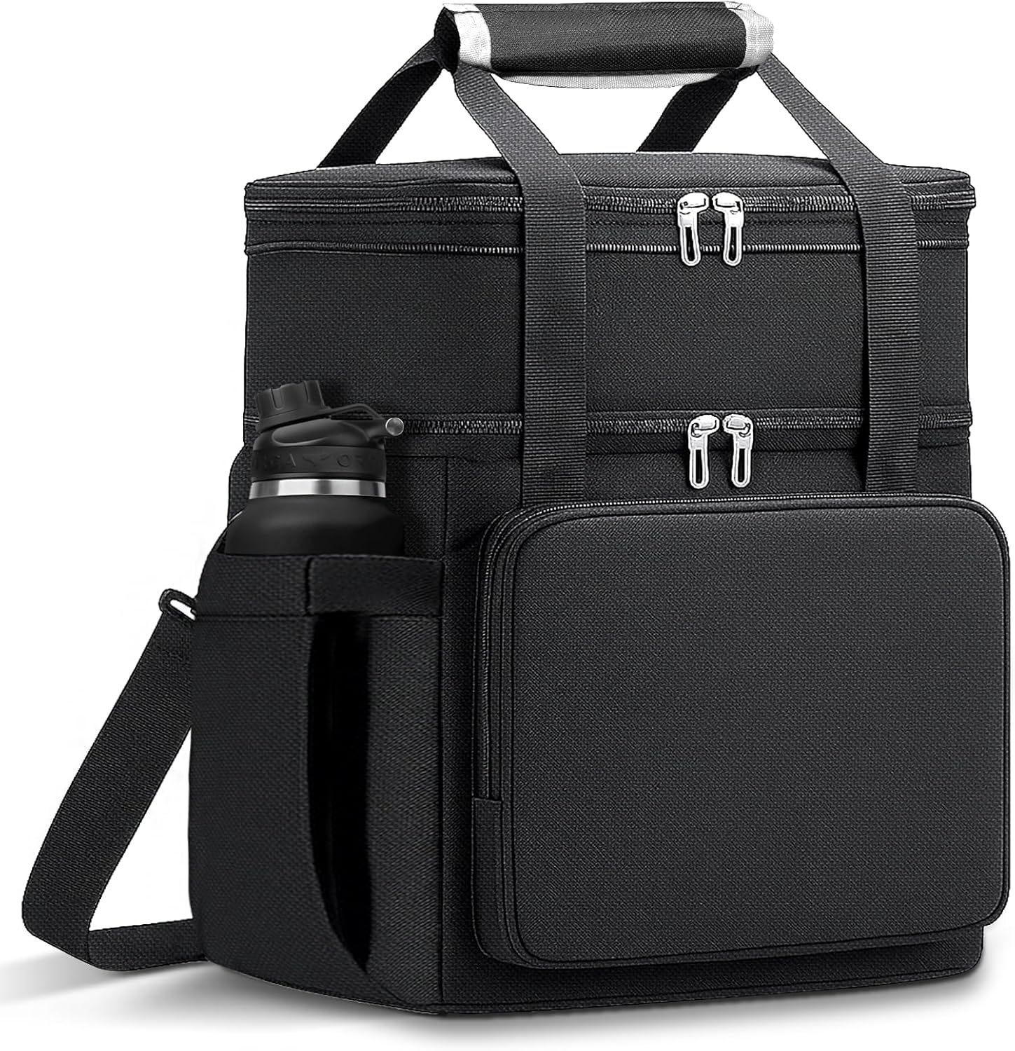Lunch Box for Men Women, Large Expandable Insulated Lunch Bag, Double Deck Leakproof Cooler Bag for Adults Work Office Outdoor Beach Trips, Black 16L