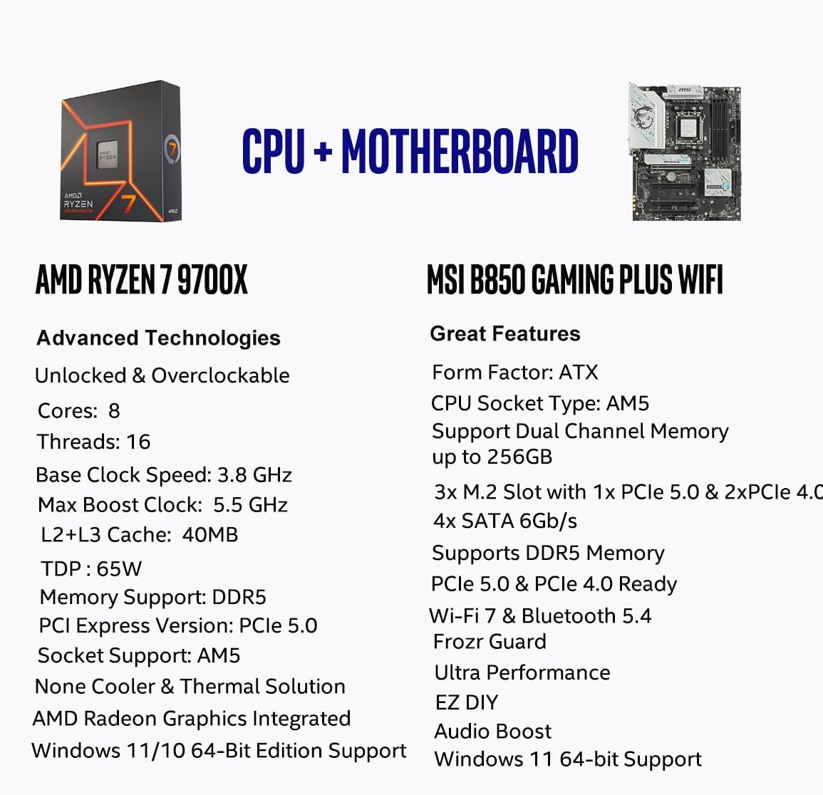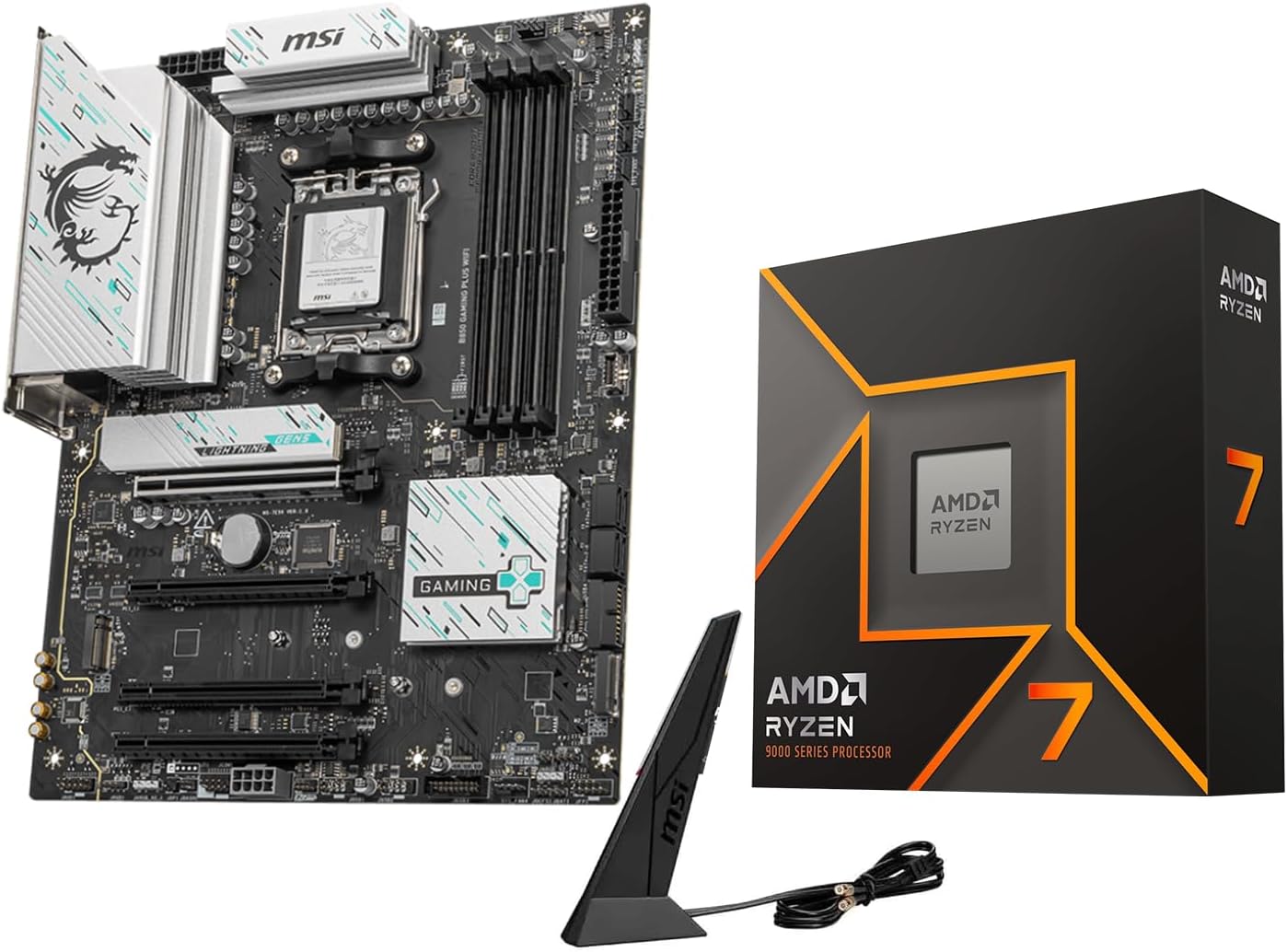 Micro Center AMD Ryzen 7 9700X CPU Processor with MSI B850 Gaming Plus WiFi Motherboard (ATX, AM5, DDR5, PCIe 5.0, M.2 Gen5, Wi-Fi 7, 5G LAN)