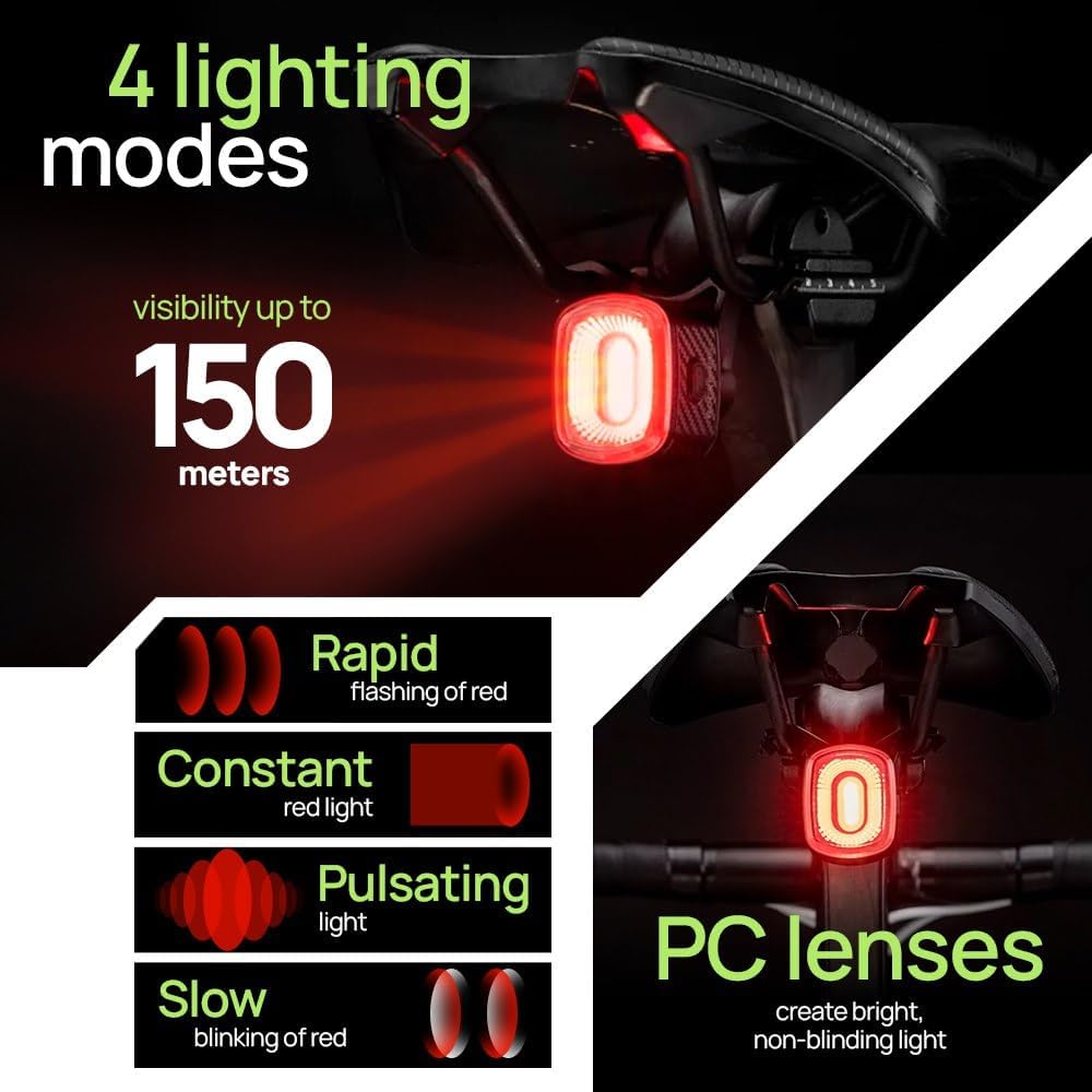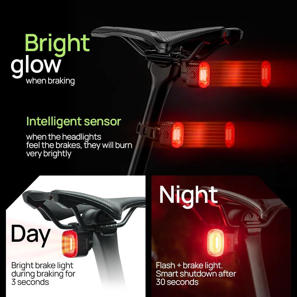 3️⃣ [Smart Tail Light with Brake Sensor]: Enhance your cycling safety with our lights for bicycle equipped with a smart tail light. The brake sensor activates automatically, offering a reliable bicycle safety light that alerts others of your movements for increased security day or night.