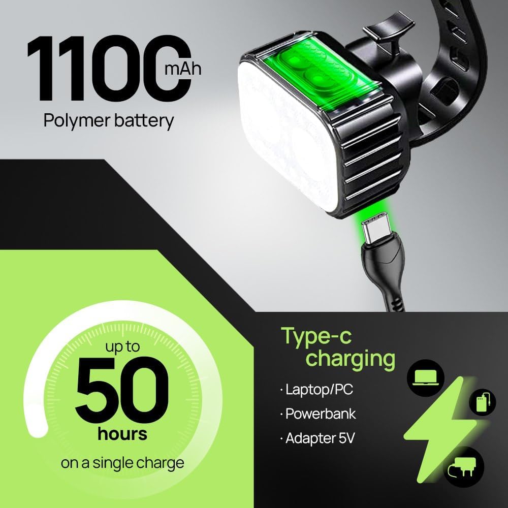 2️⃣ [USB C Rechargeable Convenience]: Our bike safety light is designed for ease with USB C rechargeable capabilities. Say goodbye to disposable batteries and embrace the future of cycling lights for road bike, making your biking experience both eco-friendly and convenient.
