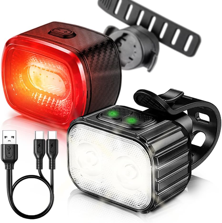 Bike Lights Kit Front and Back, USB C Rechargeable with Auto Brake Sensing, Waterproof Bicycle Headlight & Tail Light Set for Night Riding, Long Battery Life for Cycling Safety
