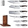 HOSHANHO 7 Pieces Kitchen Knife Set, Japanese High Carbon Stainless Steel Magnetic Knife Block Set, Ultra Sharp Chef Knives Sets with Ergonomic Pakkawood Handle