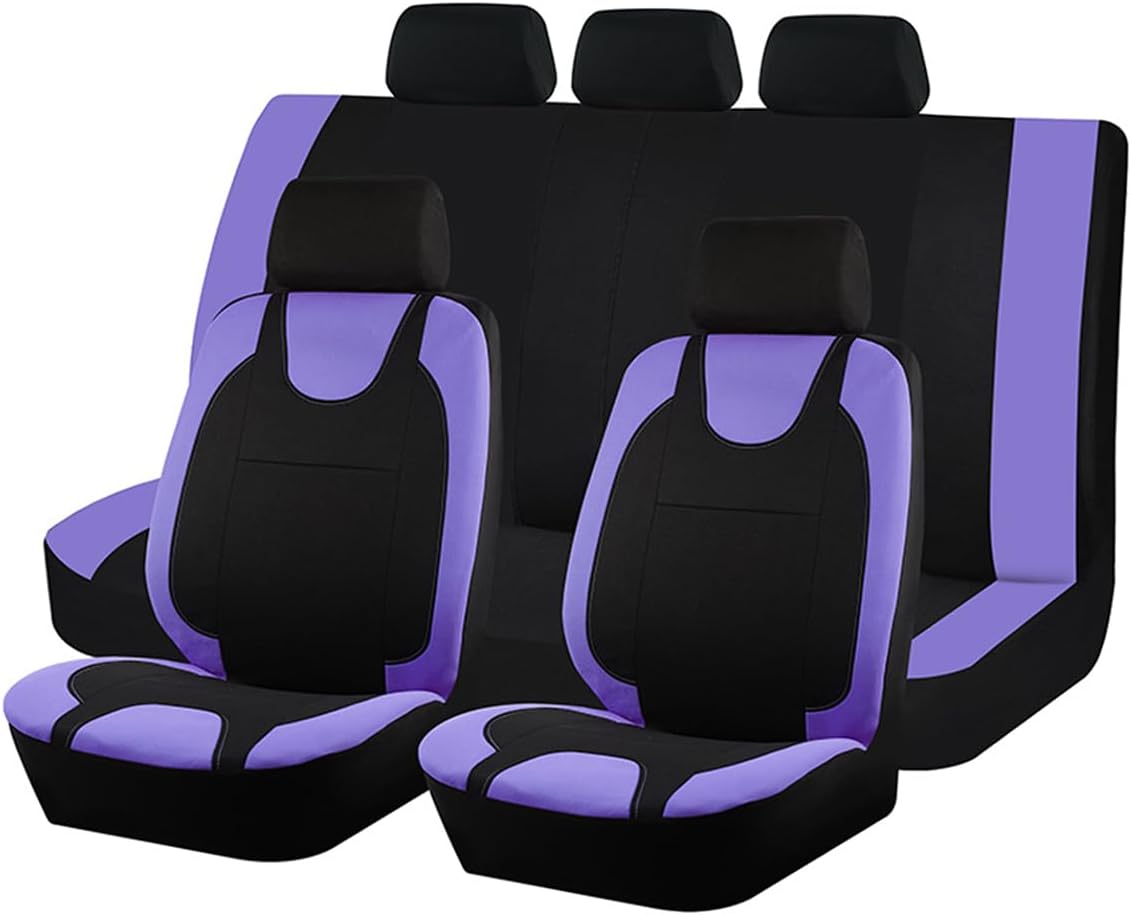 9PCS Car Seat Covers Full Set, Polyester Washable Vehicle 5-Seats Protectors with Headrest Cover, Comfortable Automobile Seat Interior Protection, Universal for Sedan Truck SUV (Purple)