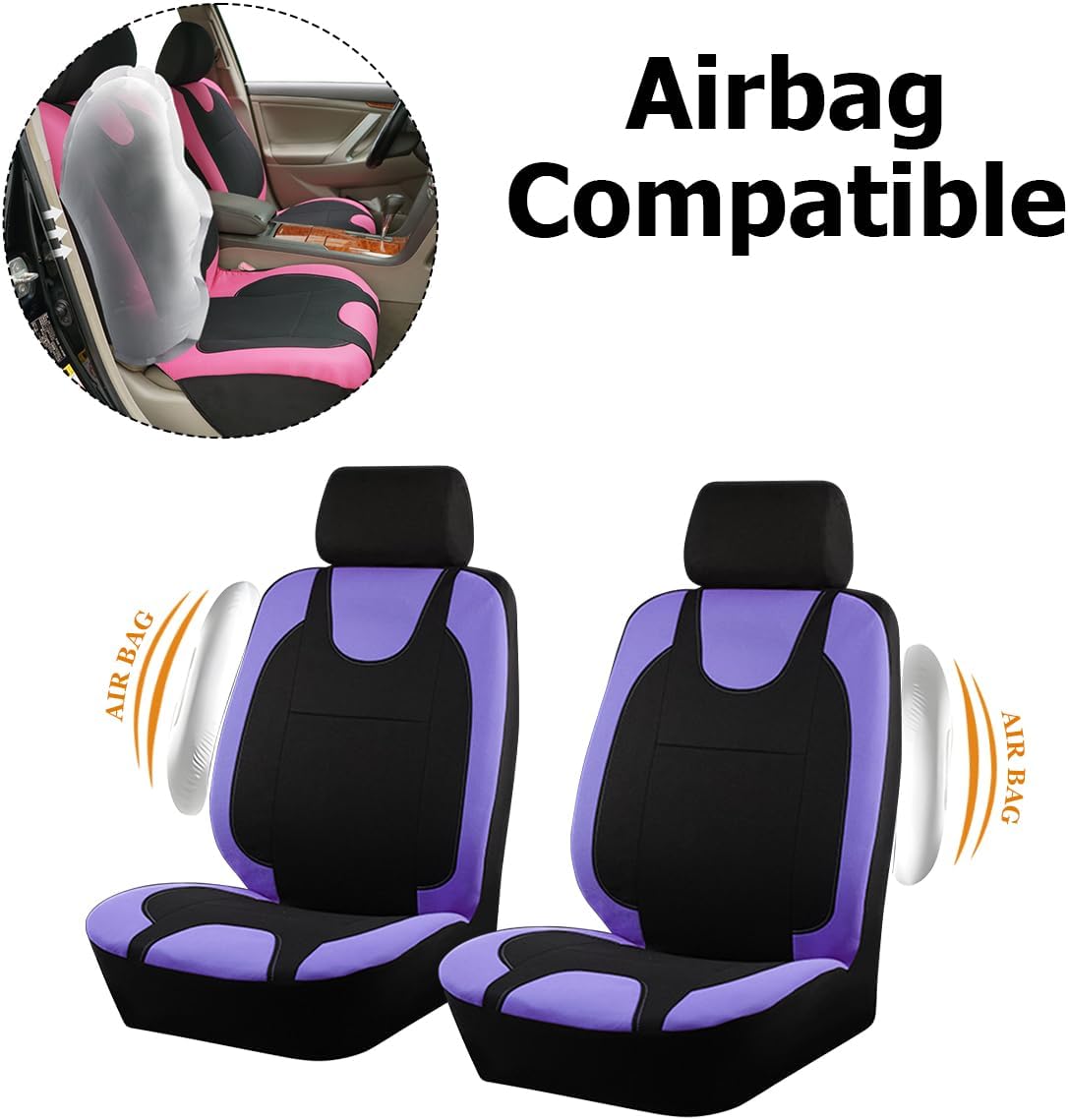 Specifications: Material: polyester, sponge Color: purple, pink, grey, beige, blue Size: front low back bucket covers: 25.6 x 20.5 x 22inches rear bottom bench cover: 50.39 x 22.05inches headrest cover: 11 x 10.2inches rear backseat cover : 50.39 x 31.5inches Weight: 600g/21.16oz Package Include: 2pcs front low back bucket covers, 1pc rear backseat cover, 1pc rear bottom bench cover, 5pcs separate headrest covers Features: -Breathable: Breathable polyester fabric with soft sponge, it is not easy to get hot and sweaty even after a long ride, Skin-friendly material cares for your skin and brings you a comfortable driving experience. -Multi-scene Adaptability: Whether it is daily commuting, business car scene, or outdoor travel can be adapted. No need to change frequently, easy to handle different style needs, so that the car in a variety of occasions are unique charm. Notes: 1. Please note that the front seats with high backrests, built-in seat belts, and seats with armrests are not applicable, please check the seat configuration of the model carefully before ordering. 2. In order to prolong the service life, this seat cover is recommended to be hand washed, please do not machine wash, thank you for your cooperation!