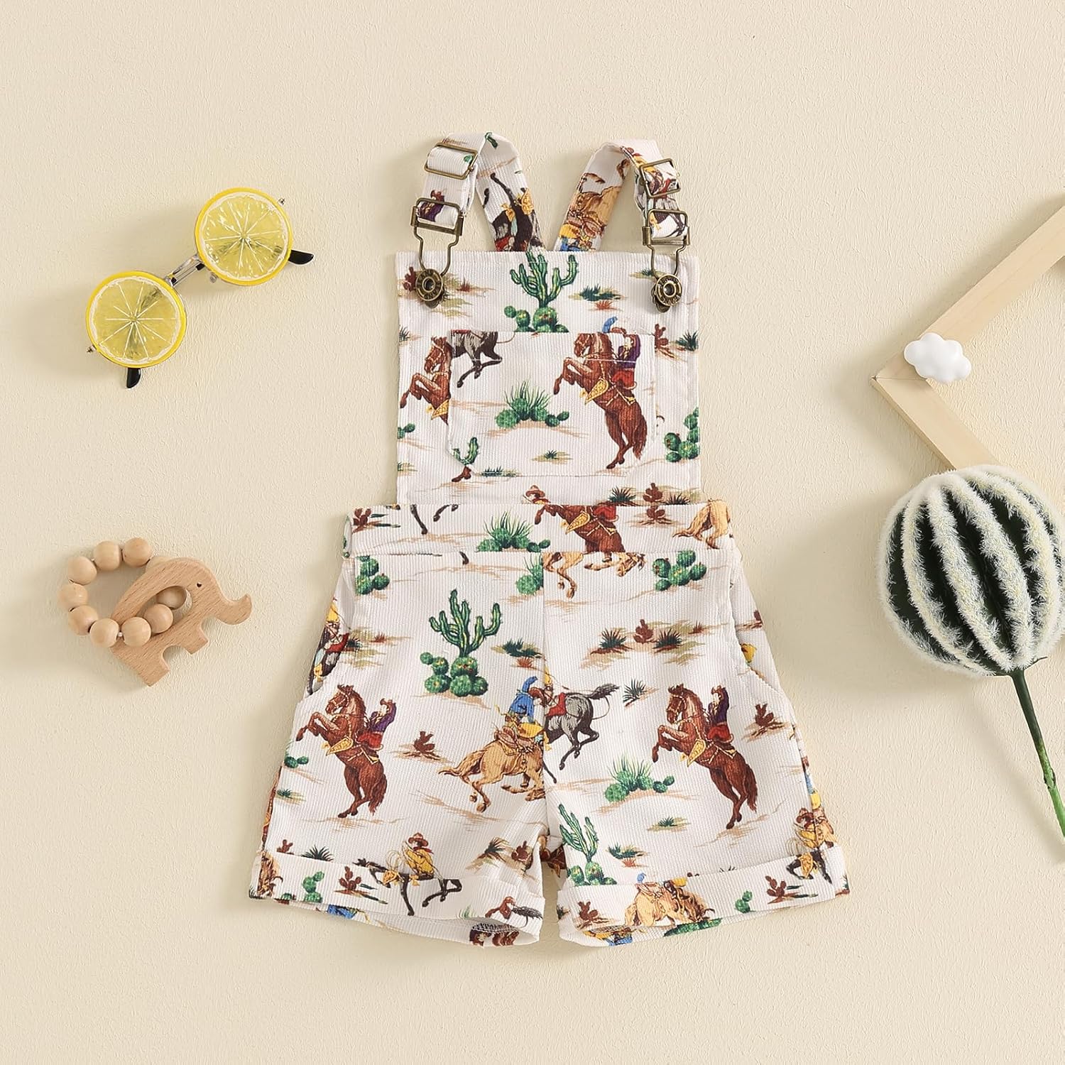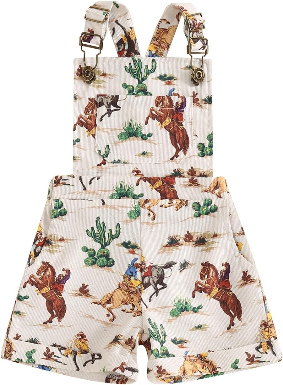 Toddler Baby Girl Western Overalls Horse Cow Print Corduroy Romper Suspender Jumpsuit Shorts Country Cowgirl Outfit