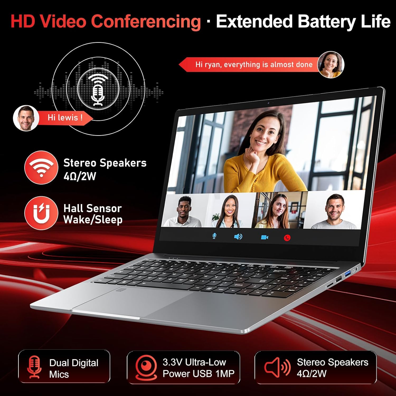 【User-Friendly Features for Efficiency】Boost productivity with a backlit keyboard for low-light typing, and a fingerprint unlock (on touchpad) for secure, one-touch access. The 1MP front camera, dual digital microphones, and stereo speakers enhance video calls and media playback.