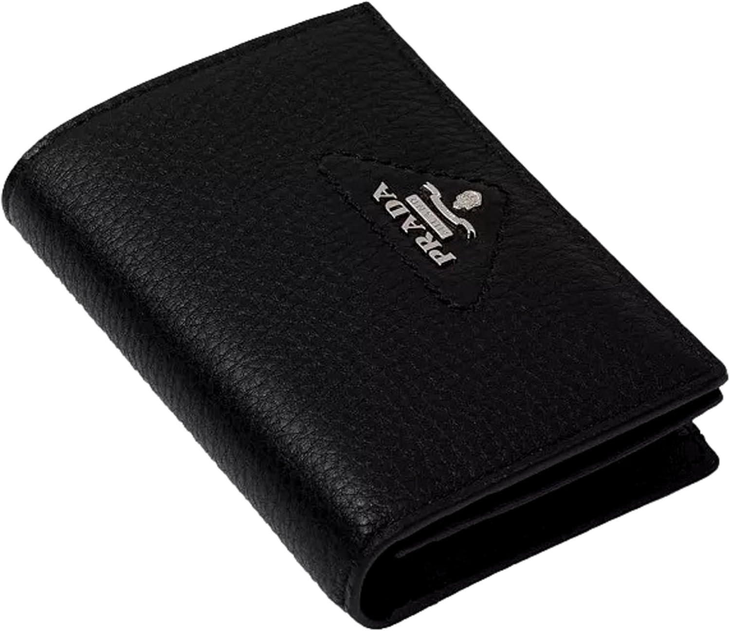 Prada Womens Nero Black Vitello Daino Silver Triangle Logo Small Wallet Zipper Coin Pouch 1MV021