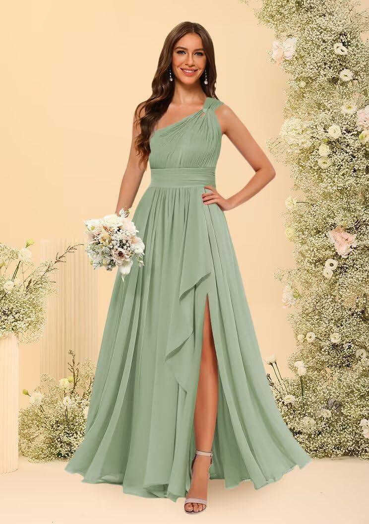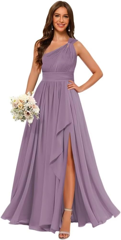 Stylefun Women's One Shoulder A Line Bridesmaid Dresses Long Chiffon Pleated Formal Evening Party Gowns CYM313