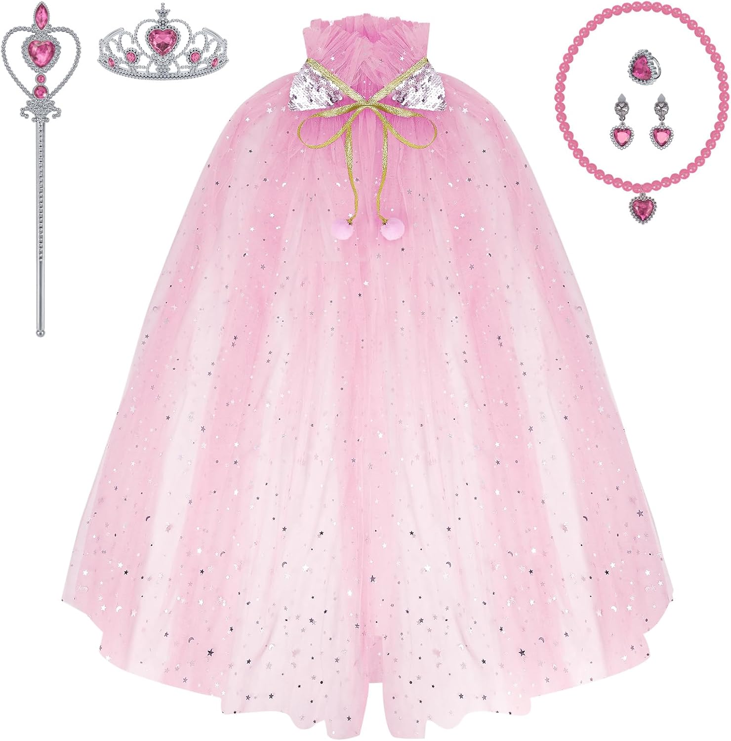 Princess Dress Up Clothes, 7pcs Princess Cape Crown with Wand for Girls 3-8 Years Toddler Princess Dress Up for Birthday Gift