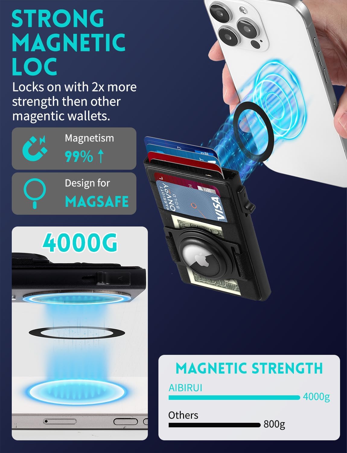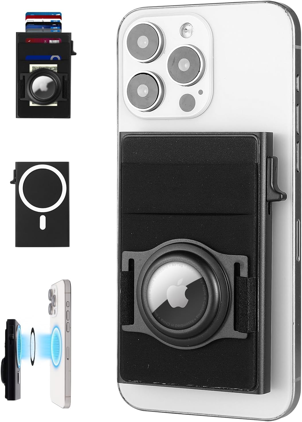 Magsafe Wallet with AirTag Holder, Magsafe Slim Wallet for iPhone 15/14/13/12 Pro Max Plus Mini, Minimalist Credit Card Holder with Elastic Pocket for Cash,Coins&Keys, Magsafe Pop up wallet