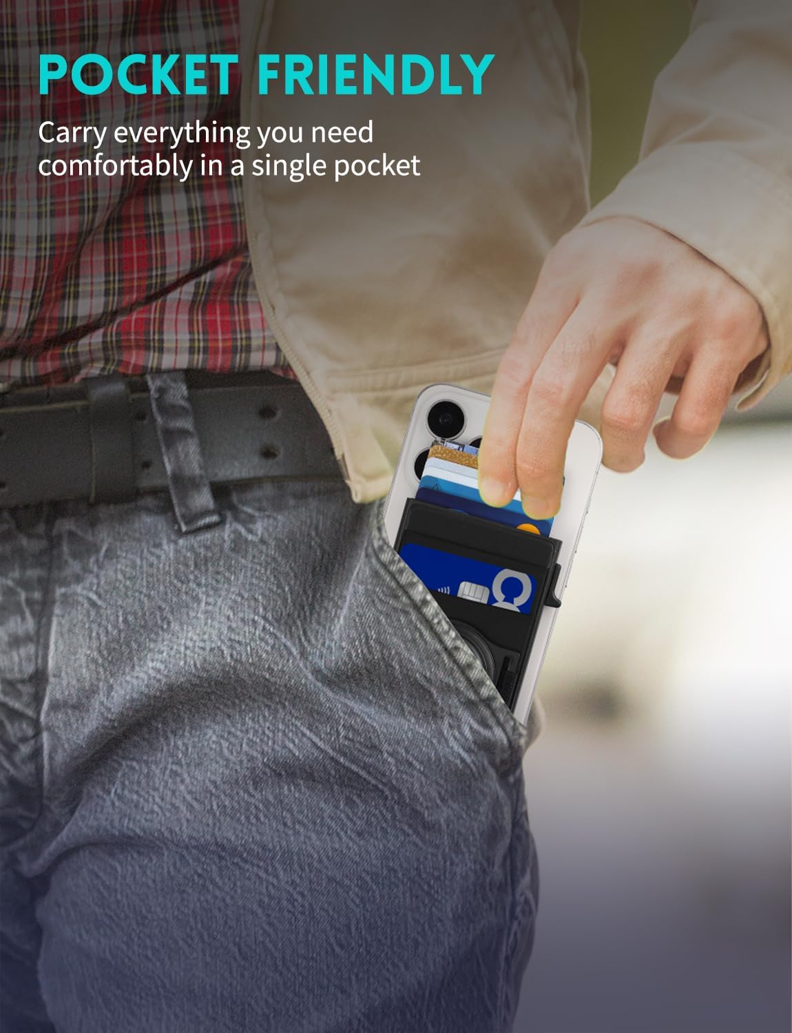 【SLIM, STYLISH & DURABLE DESIGN】 ➤ Premium Materials for Everyday Use, Crafted from high-quality, durable materials, this magnetic wallet is built to last while maintaining a sleek,low-profile look and pop up wallet.The Magsafe wallet adds minimal bulk to your phone, fitting comfortably in your pocket or hand.The combination of a sturdy frame and resilient elastic fabric provides secure storage and easy access to your belongings without stretching out over time
