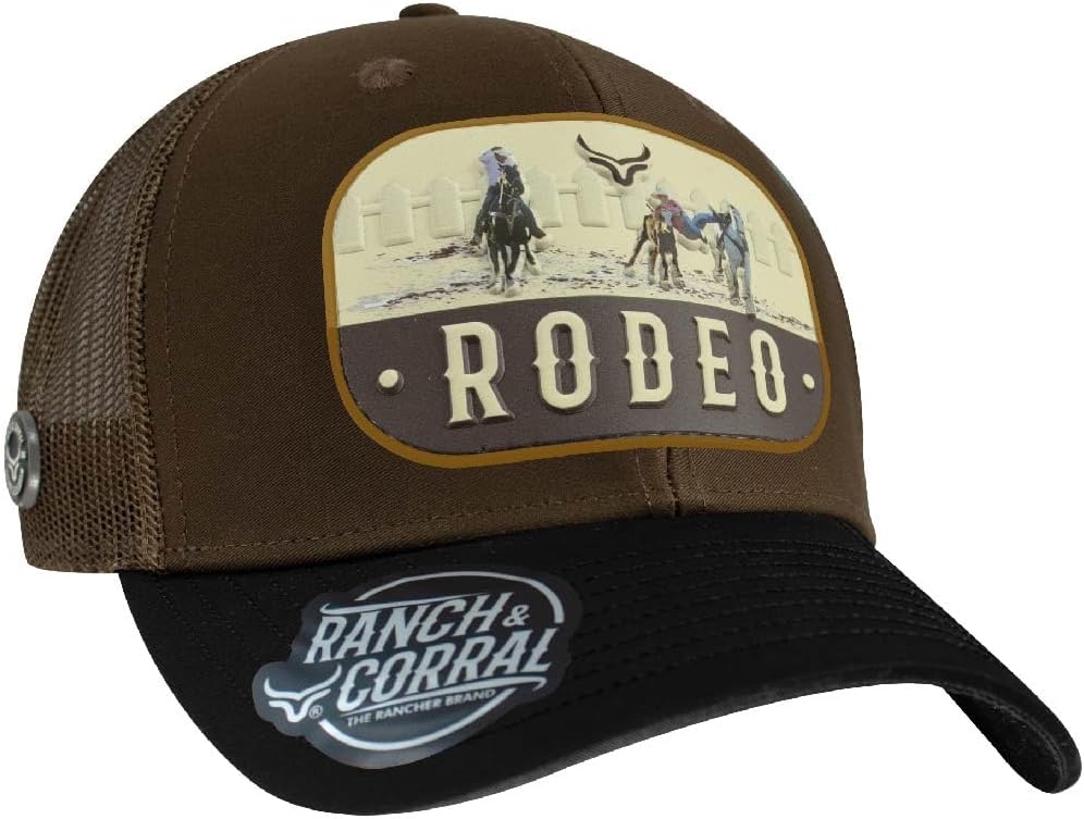 Ranch & Corral Rodeo Cap, Mesh Back, Brown and Black, Cowboy Style, Black, 3-5 3/8