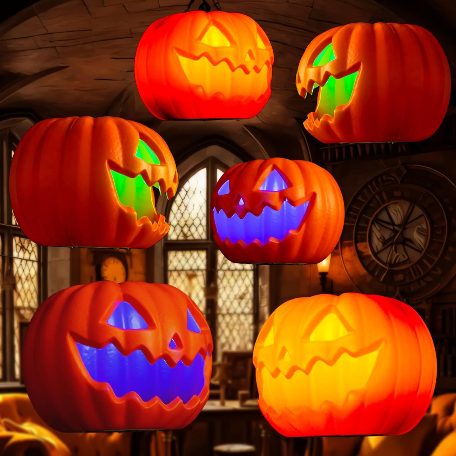 Easy Setup: This pack includes 6 pumpkin lanterns, 6 hooks, 1 remote control, Instructions and a spool of fishing line, allowing you to creatively position each pumpkin anywhere in your home or yard.