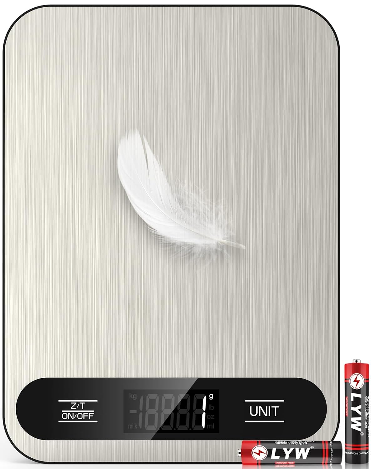 【Multifunction Unit】The food scale supports 6 unit conversions: g, kg, lb, oz, ml, milk ml. Includes 2 AAA batteries.