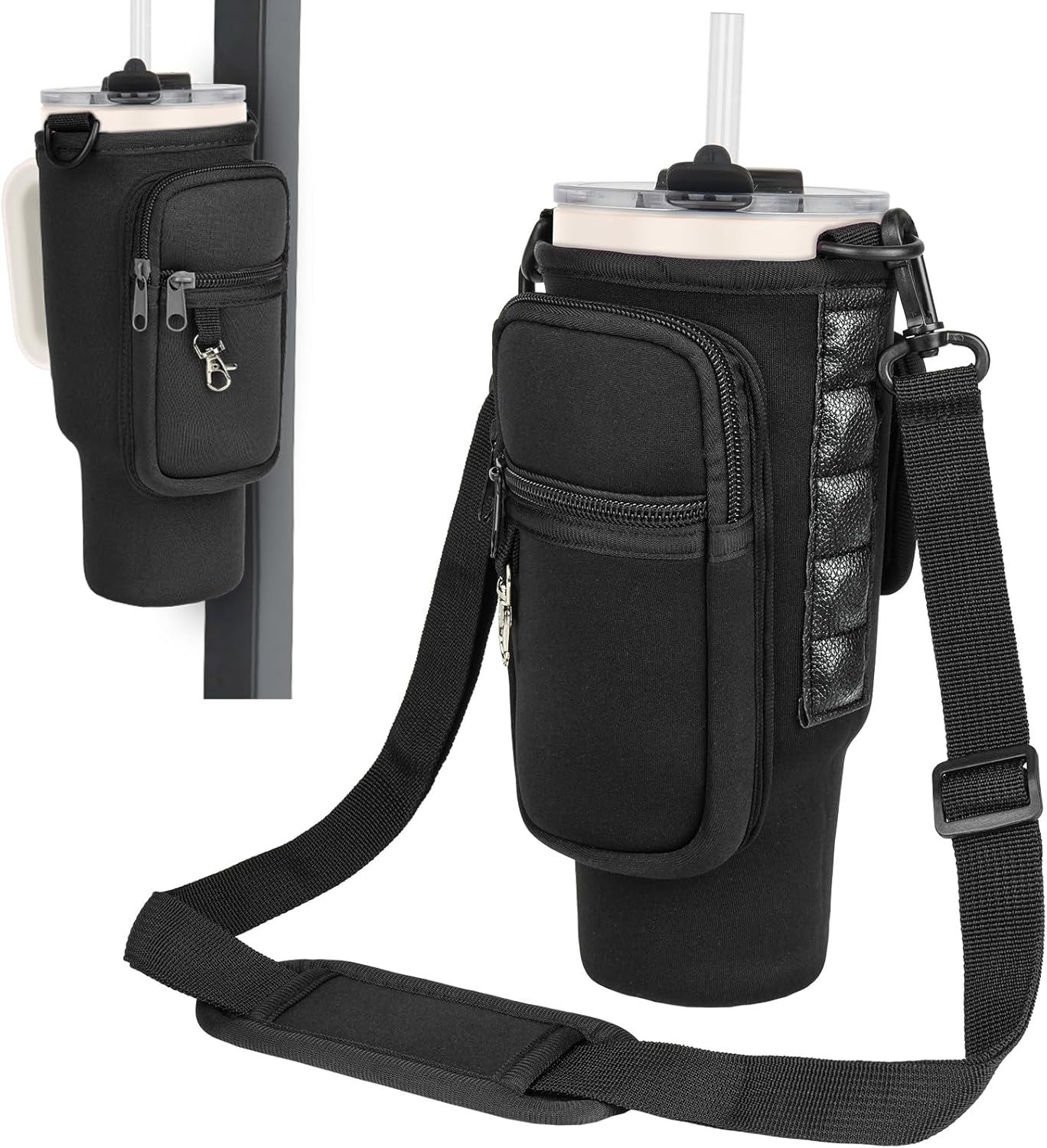 Two Extra Pockets: The bag compatible with stanley 40 oz accessories is designed with two front pockets and an extra Key hook.Large zipper pocket to store your phone and other essentials, small zipper pocket to store cash and card;Provides ample storage space for your belongings