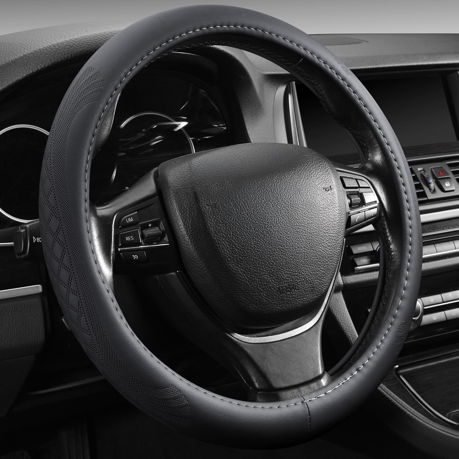 【2025 Model】 Breathable Soft Leather Car Steering Wheel Cover for Men Women, Non-Slip, Comfortable,Universal 15 inches Steering Wheels, Black