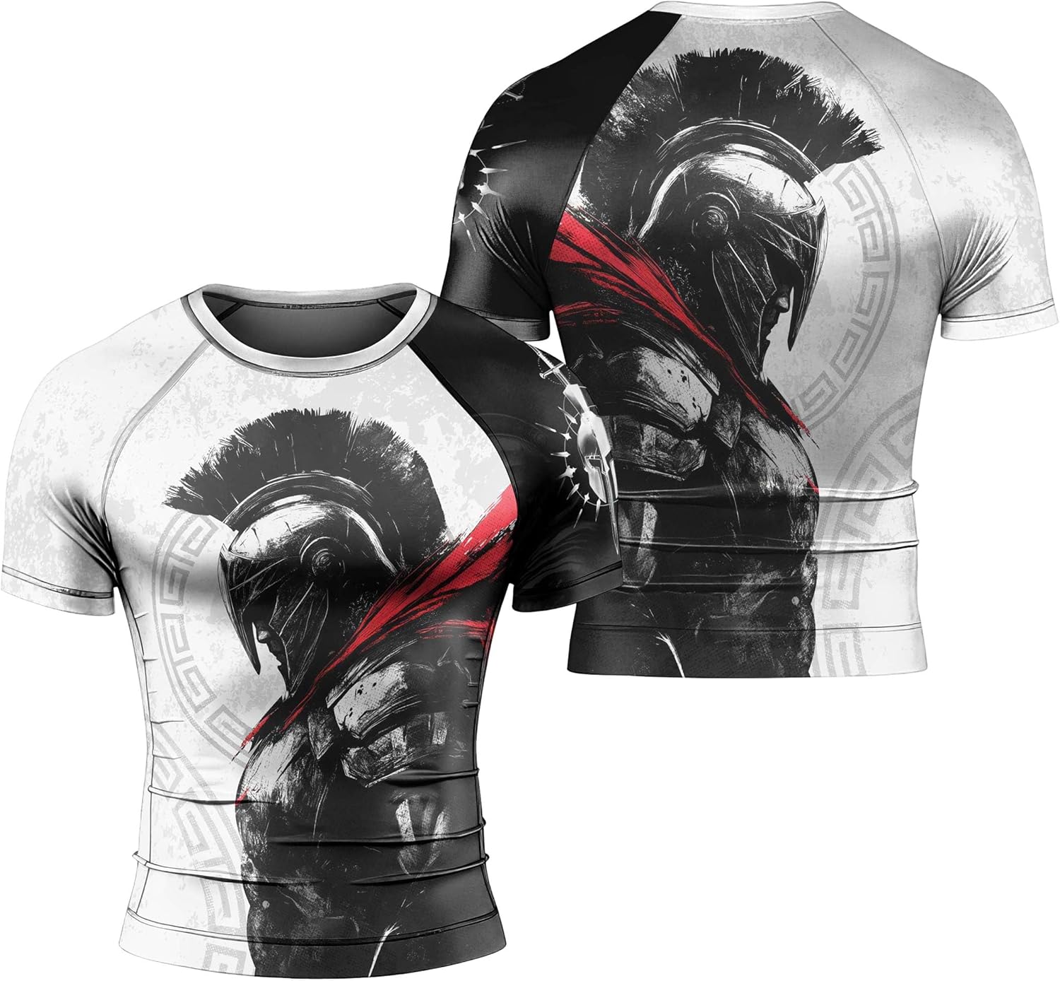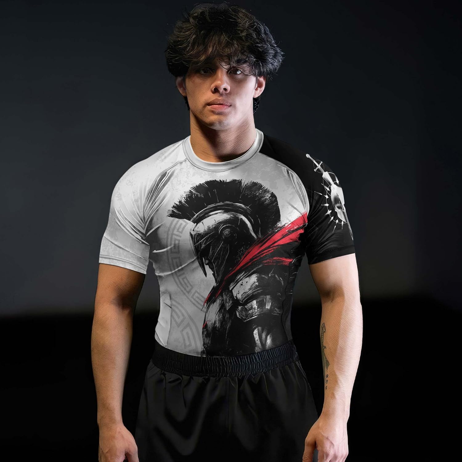 Spartan Guardian Men's Rash Guard Short Sleeve BJJ Rashguard for Men Jiu Jitsu Rash Guard Tight Compression Shirt
