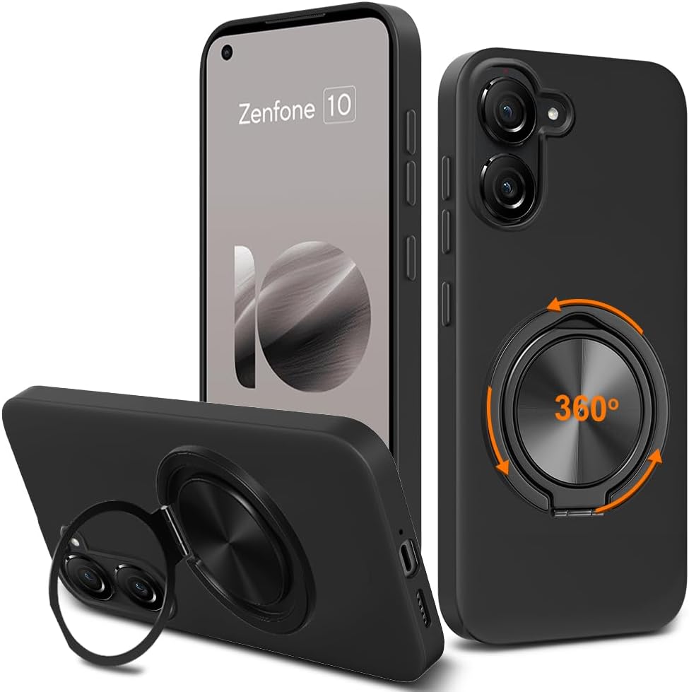 Compatible for ASUS Zenfone 10 / Zenfone 9 Phone Case, 360° Rotatable Ring Holder Kickstand/Stand Silicone TPU Silm Fit Shockproof Protective Cover Case for ASUS Zenfone 10/9 AI2202 AI2302 - Black