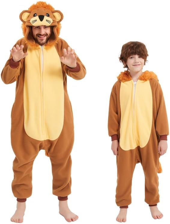 Cartoon Animal Sleepsuit, Cute Animal Lion Onesie Pajamas Sleepwear Cosplay Costume for Kids and Adults