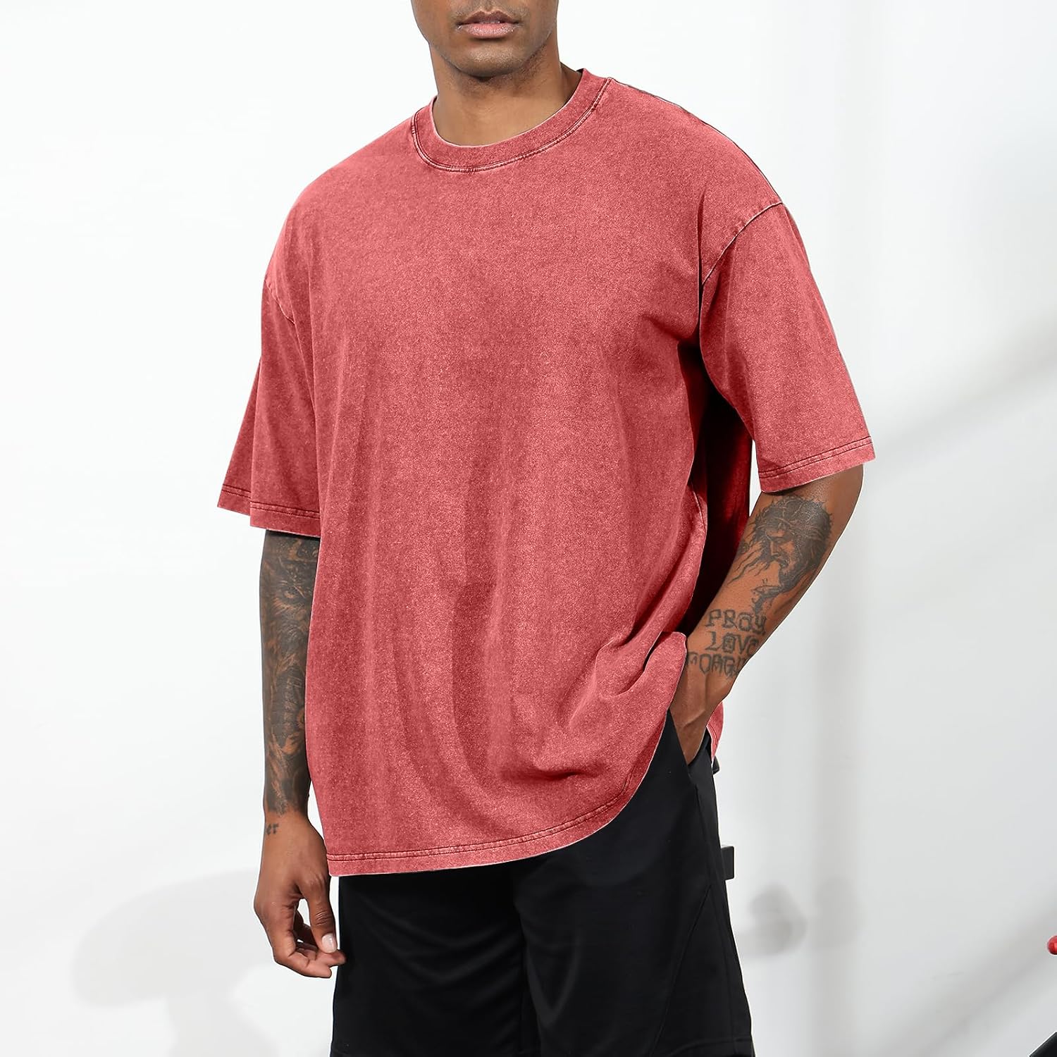 Bobeutou Oversized Vintage Acid Wash Tshirt for Men Cotton Solid T Shirt Streetwear Basic Tees Casual Baggy Loose Shirts Tops