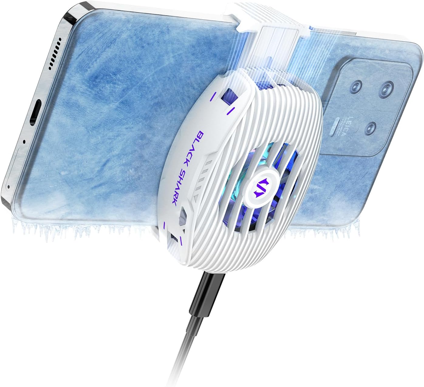 Black Shark Phone Cooler for Gaming FunCooler 5 NEO, Wired Mobile Phone Cooling Fan Lightweight Quiet with RGB Light, Cellphone Radiator for 2.67-3.45 inches iPhone/Android, Retaining Bolt (White)