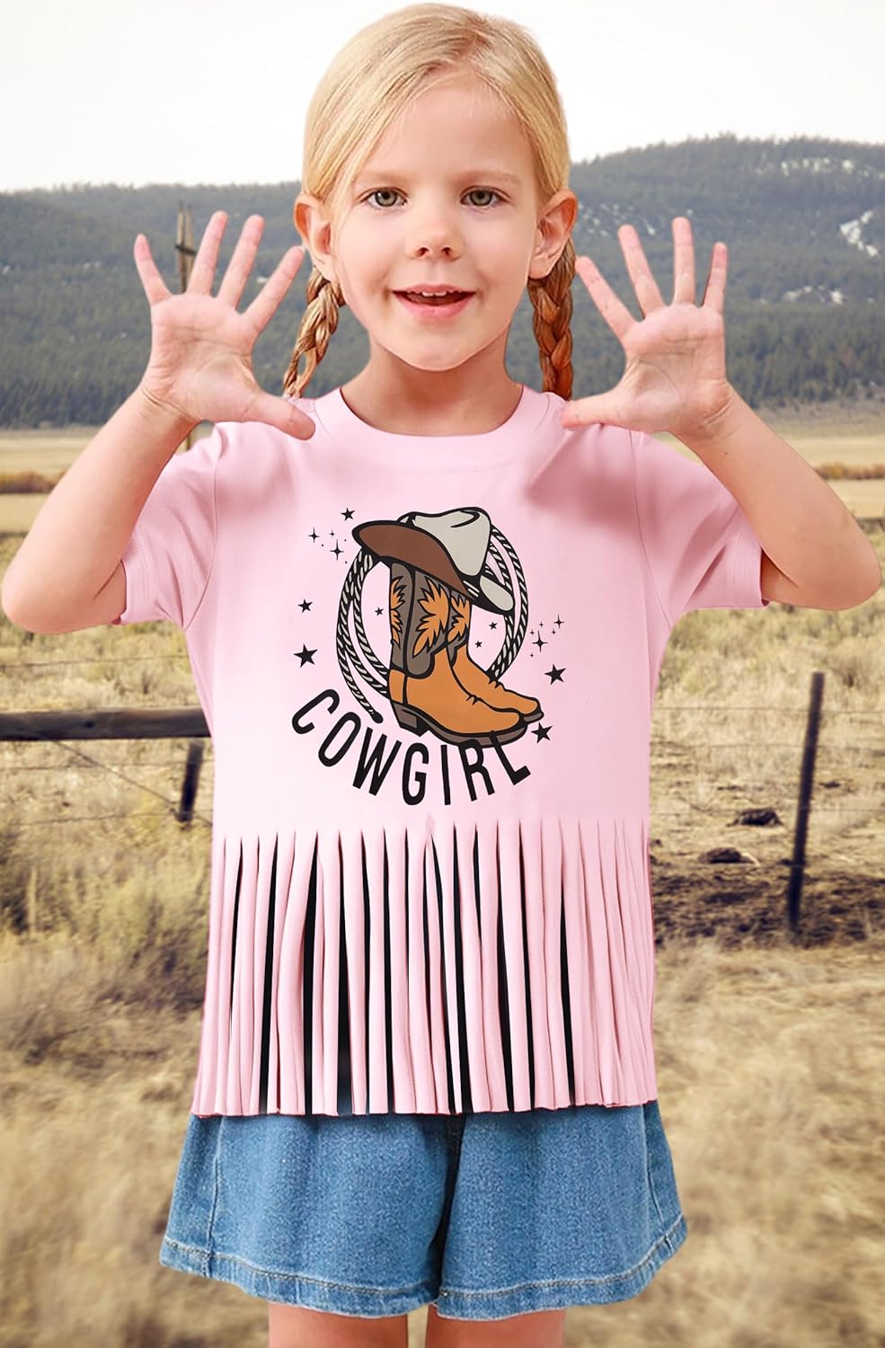 Western Shirts for Women Cowgirl Boots Hat Shirt Mom and Daughter Matching Outfits Vintage Cowgirl Fringe Tops Short Sleeve