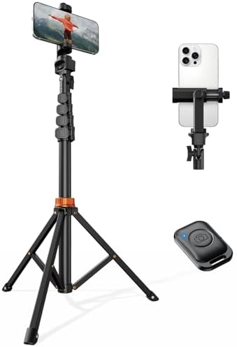66" Phone Tripod, Tripod for iPhone with Remote & Ultimate Phone Mount, Extendable Selfie Stick Cell Phone Tripod Stand for Video Recording, Compatible for iPhone/Android/Camera
