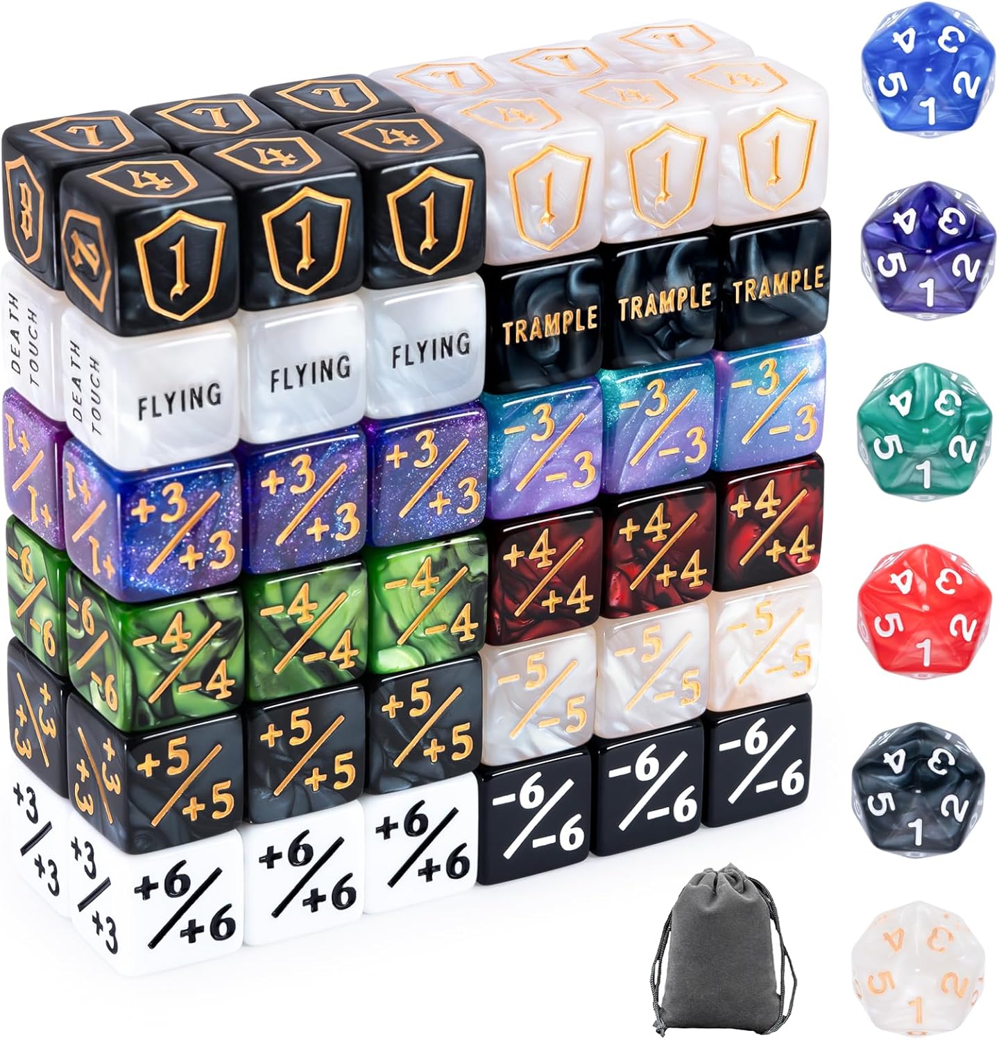 Vibrant and Versatile Design: This magic counter set includes 4 types of MTG counter dice in 12 colors, adding a striking visual appeal to your gameplay. Whether you're a seasoned player or a newcomer, this comprehensive set has everything you need.