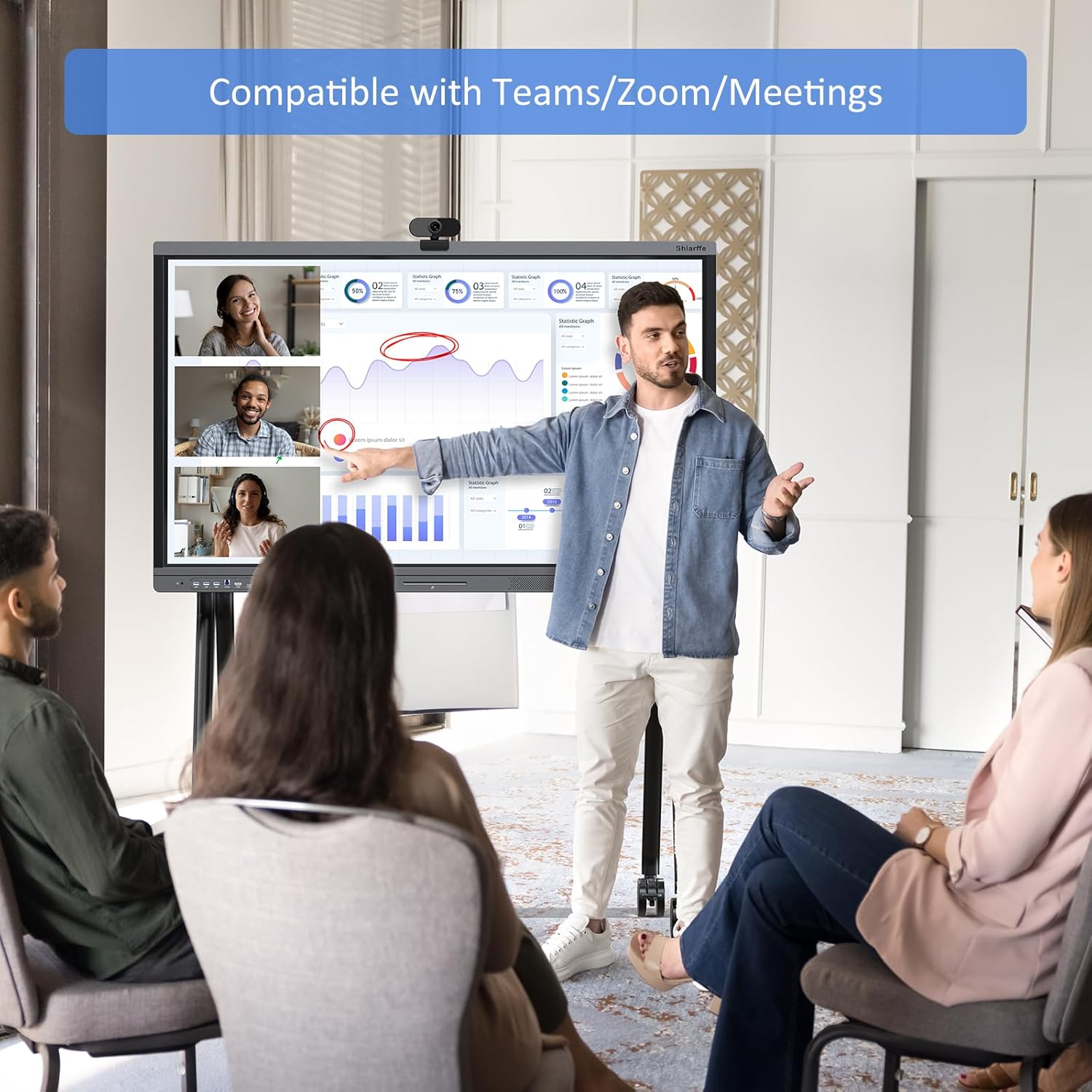 Seamless Visual and Touch Interaction: Smart whiteboard with 4K IPS display and 20-point touch delivers precise, smooth writing. scratch-resistant and anti-glare monitor is suitable for teaching, teamwork, and presentations in classrooms or offices