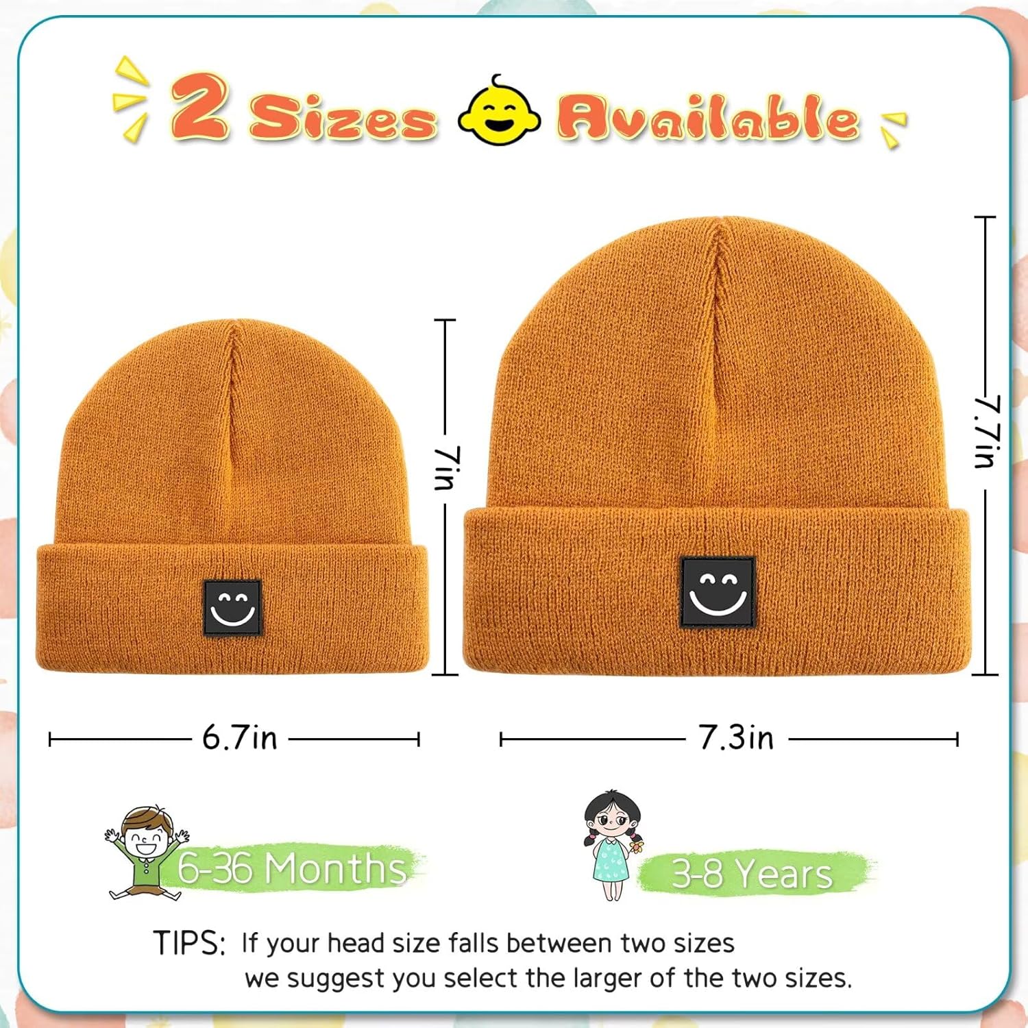 Baby Beanie Hat 3 Packs with Cute Smiley Face, Toddler Girls Boys Baby Hats Winter, Kids Winter Hat Cold Weather