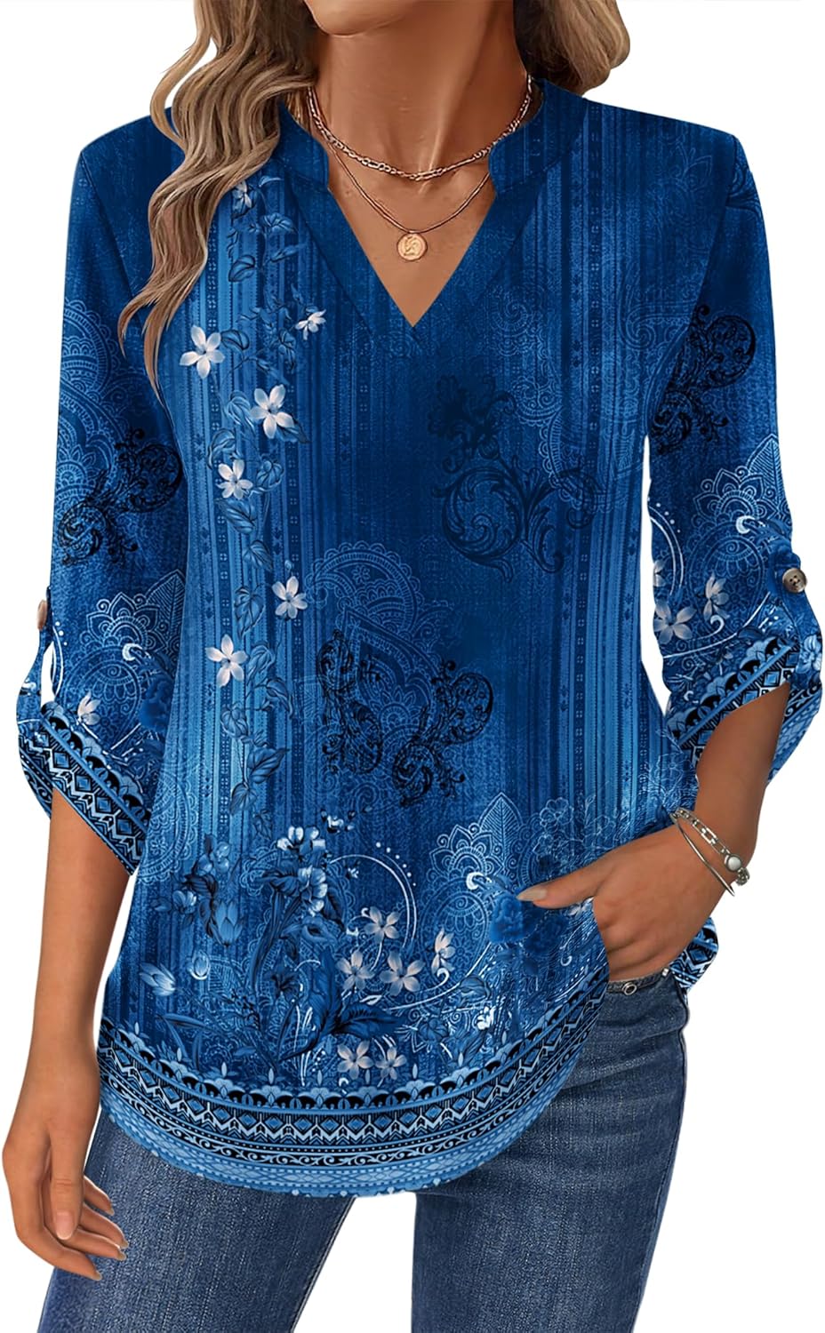 Zeagoo Womens Roll Up Long Sleeve Tops V Neck Shirts Dressy Casual Work Blouses S-2XL