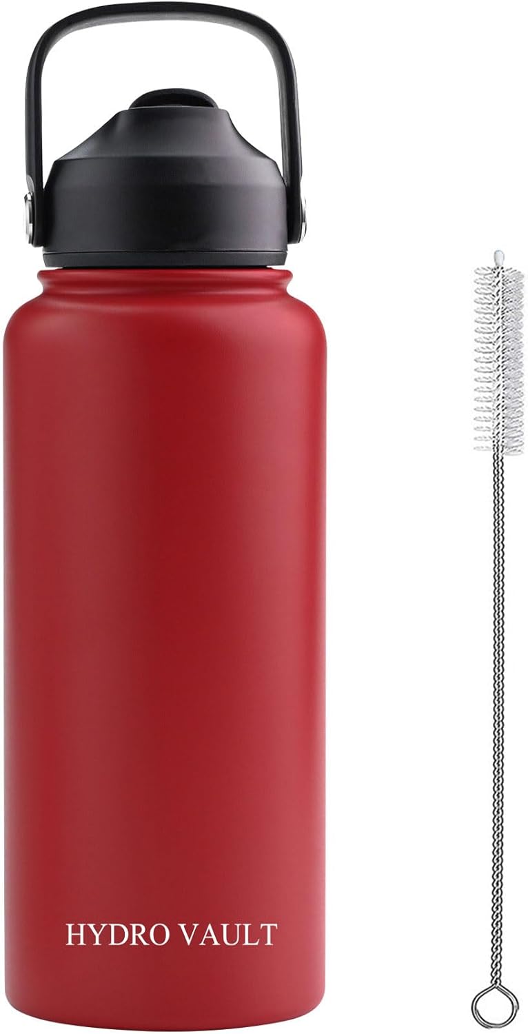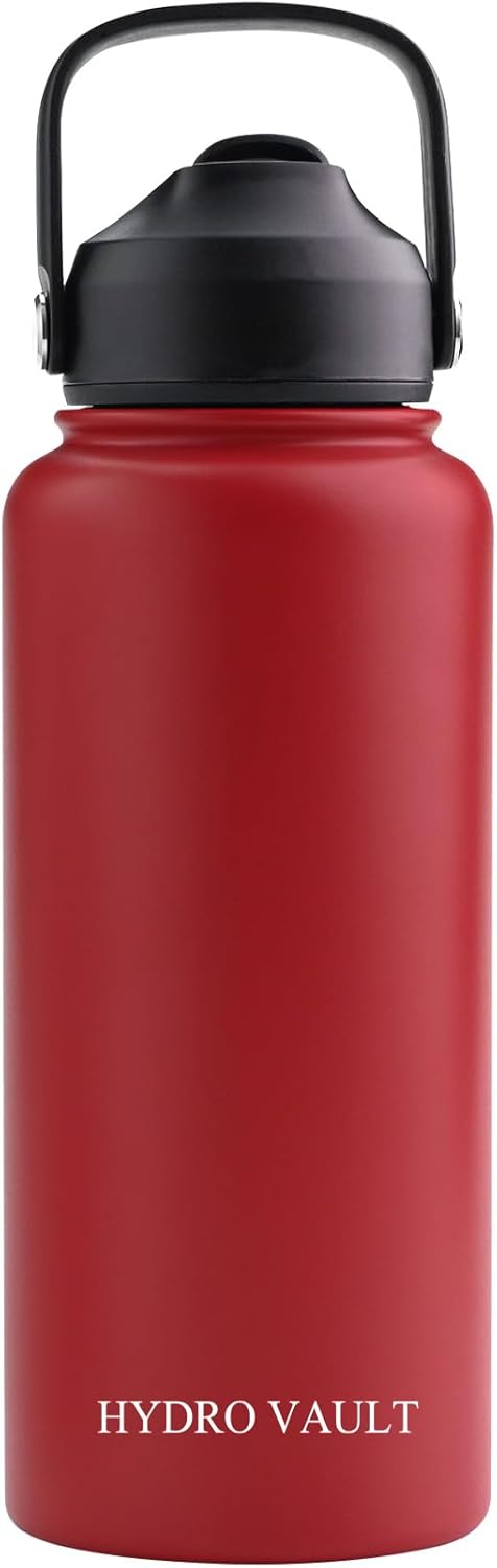 1L Stainless Steel Double Wall Insulated Vacuum Flask 32oz Powder Coated Sports Water Bottles (Red)
