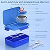 Leak-proof Bento Lunchbox with Soup Thermo -- This girls boys bento box with food thermo are adopting fully sealed design, can help you assemble different foods more freely, can keep food fresh that will not leak out or mess with other compartments food and mess-free during transport, convenient to carry around