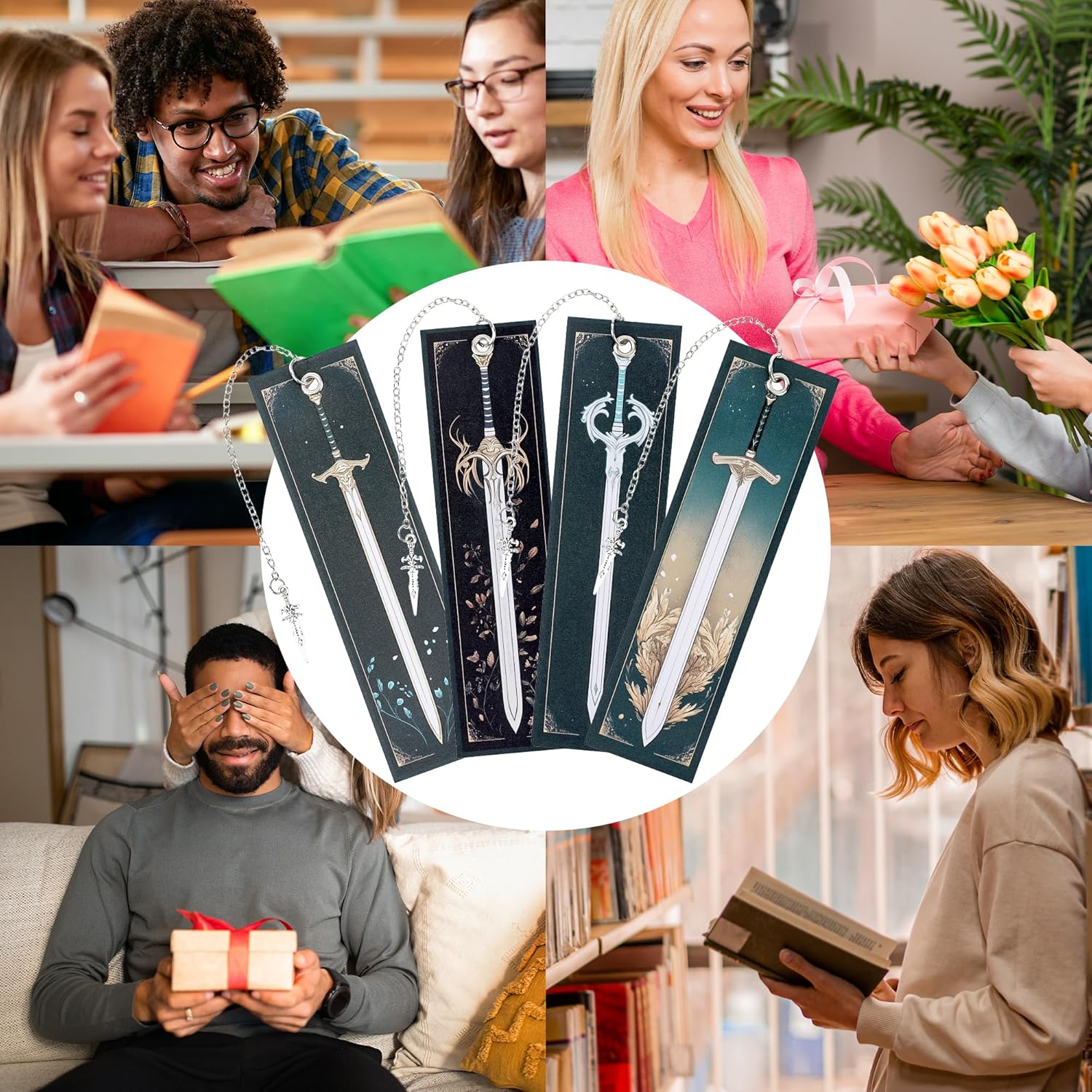 Sword Design:This set of bookmarks is influenced by the theme of sword, featuring various sword designs and paired with silver sword pendant charms that evoke a sense of fantasy. Perfect as a gift for men who enjoy fantasy tales and mythical adventures, these bookmarks combine style and storytelling in one unique set