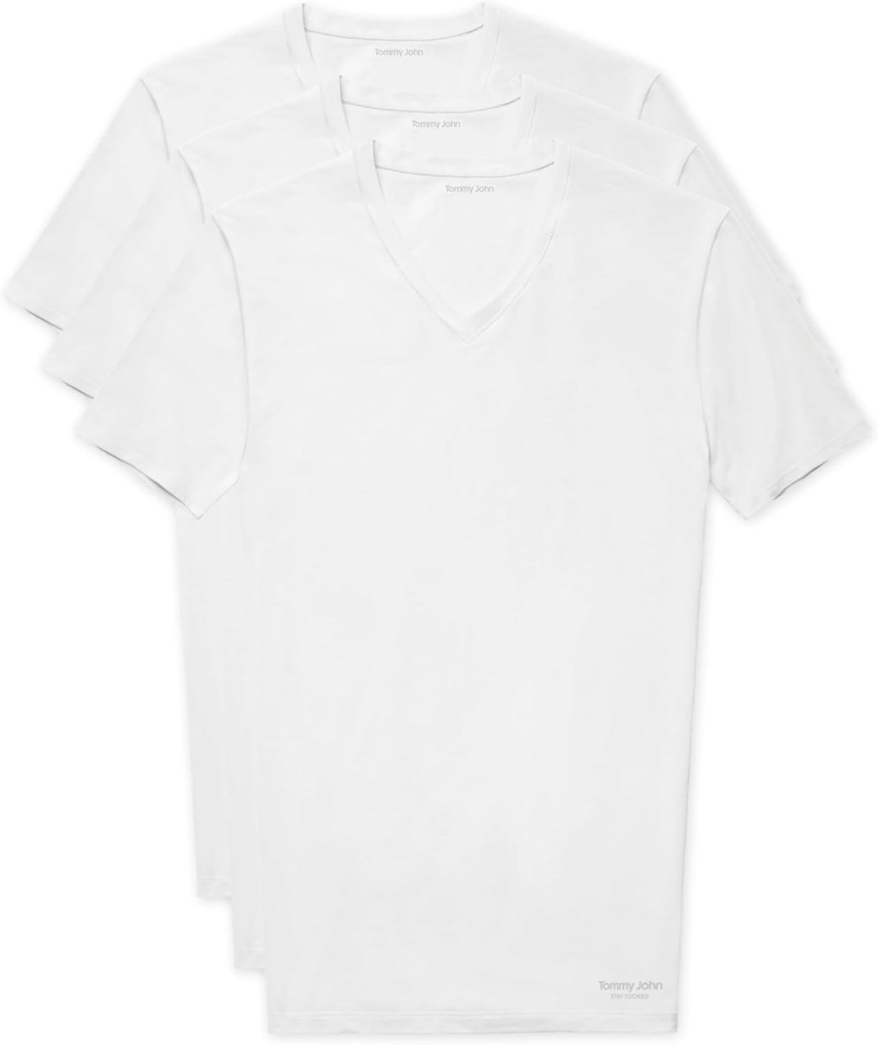 Tommy John Men's Essential Cool Cotton V-Neck Undershirt - Stay-Tucked Fit