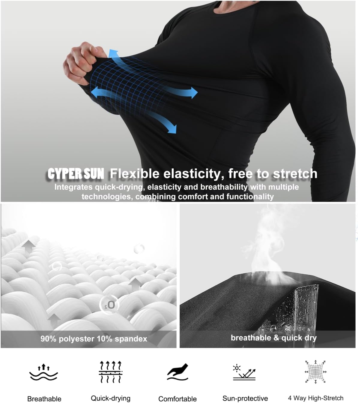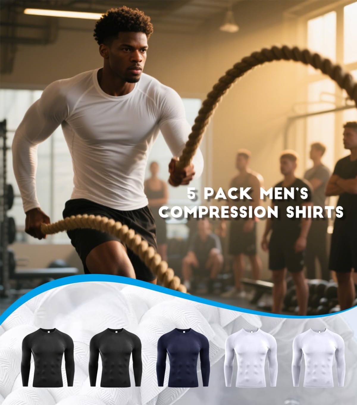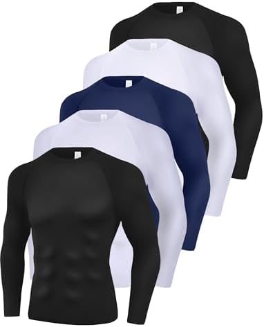 5 Pack Men's Compression Shirts Long Sleeve Undershirts Quick Dry Workout Baselayer Rash Guard Fitness Top